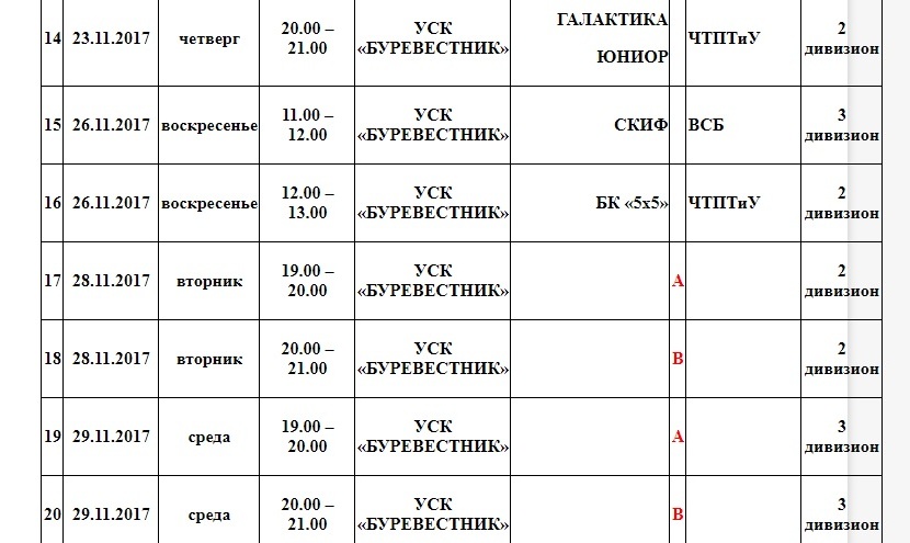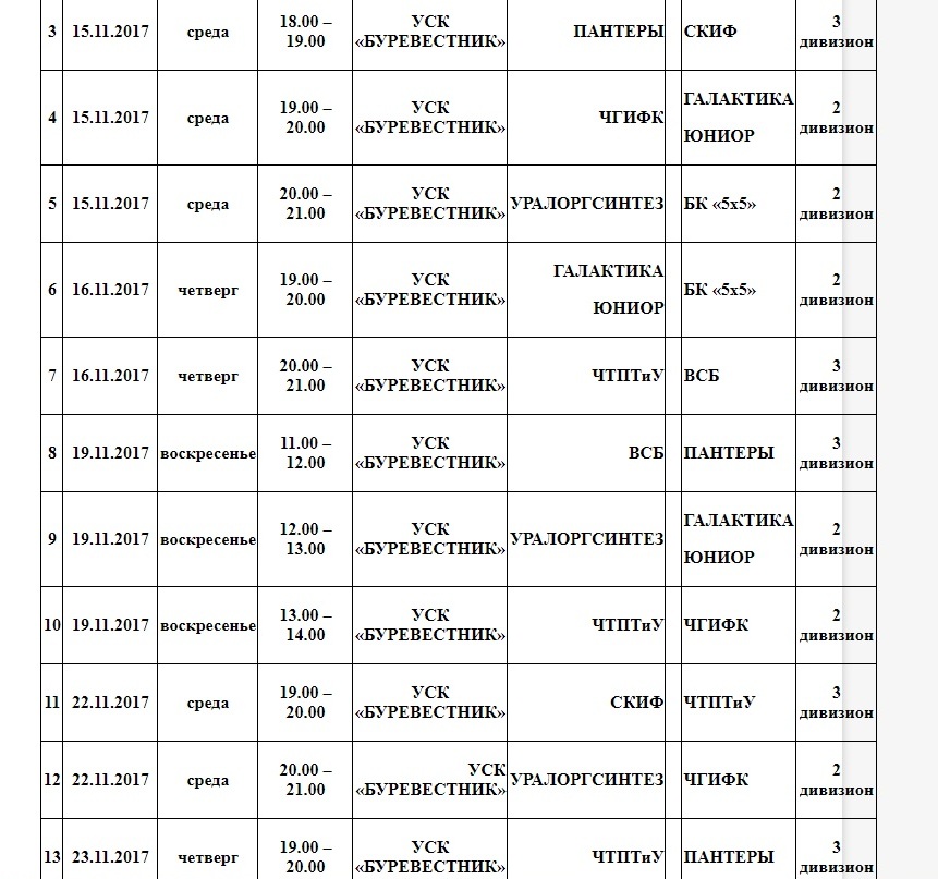 Приглашаем болельщиков поддержать любимые команды и представляем вашему вниманию расписание игр турнира.