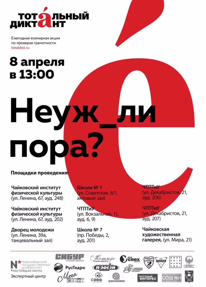 В эту субботу по всему миру около 200 тысяч человек примут участие в масштабной образовательной акции «Тотальный диктант». В 13:00 жители Чайковского смогут написать диктант на семи площадках города.