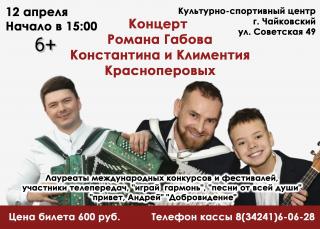 В город Чайковский с концертом едут виртуозы гармони и гитары, хранители русской песенной традиции – Роман Габов, Константин и Климентий Краснопёровы.