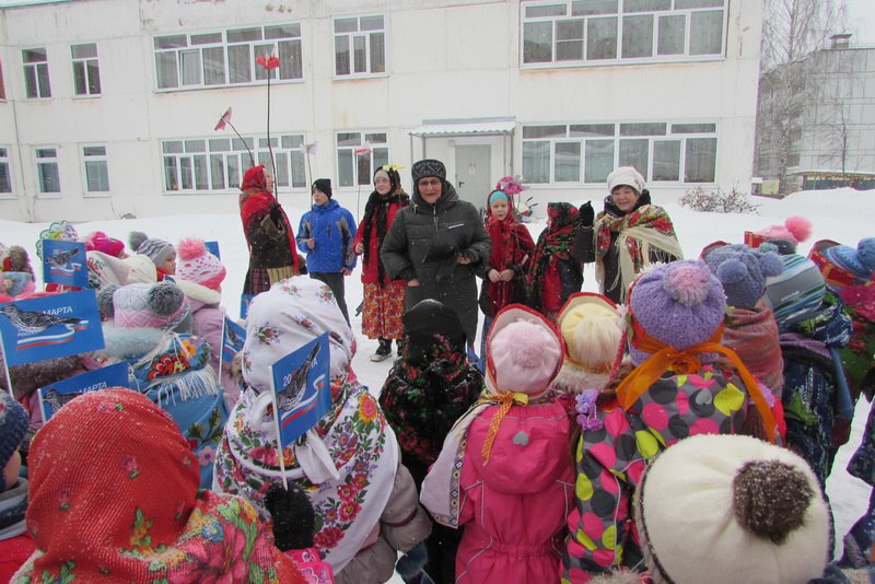 Ребят встретили песнями – веснянками участники фольклорного коллектива «Барабушка» из Детской школы искусств №1 (руководитель - Елена Викторовна Бурнышева) и хор «Зоренька» (руководитель – В.С. Поносов).