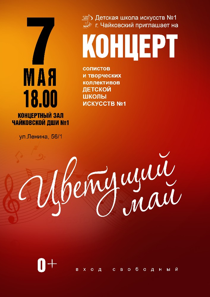 В 18.00 жителей и гостей города ждут на концерте «Цветущий май» в Детской школе искусств №1. Свои творческие выступления покажут юные таланты Чайковского района.