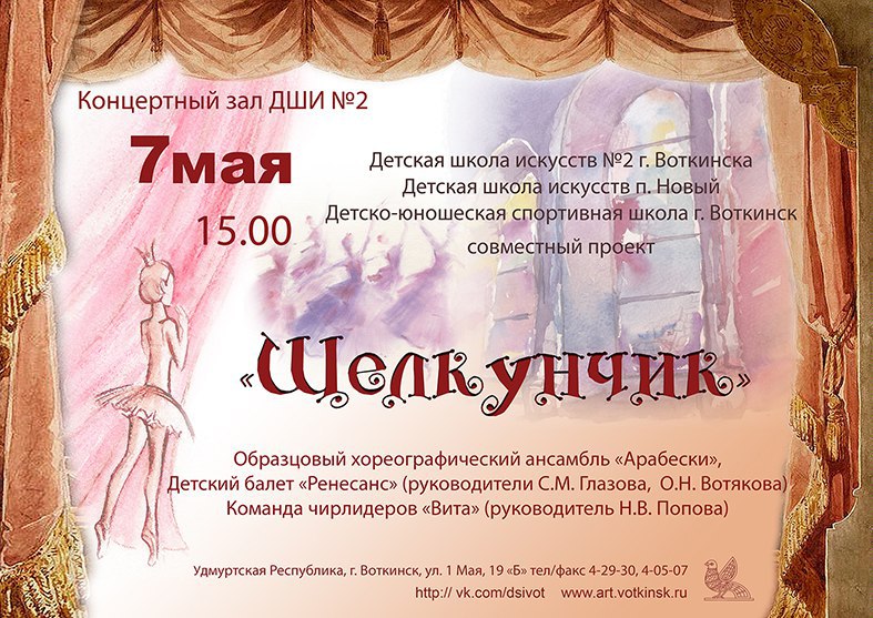 Стоит отметить, что и на Родине великого композитора день его рождения отметят праздничным мероприятием. Совместный проект «Щелкунчик» представят ДШИ №2 г. Воткинска, ДШИ п. Новый и Детско-юношеская спортивная школа г. Воткинска.
