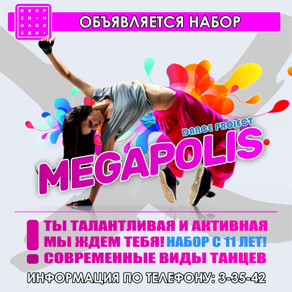 3) Молодёжный танцевальный проект «МЕГАполис» (руководитель Шахтарина Елизавета Михайловна) ждёт мальчиков и девочек с 11 лет.