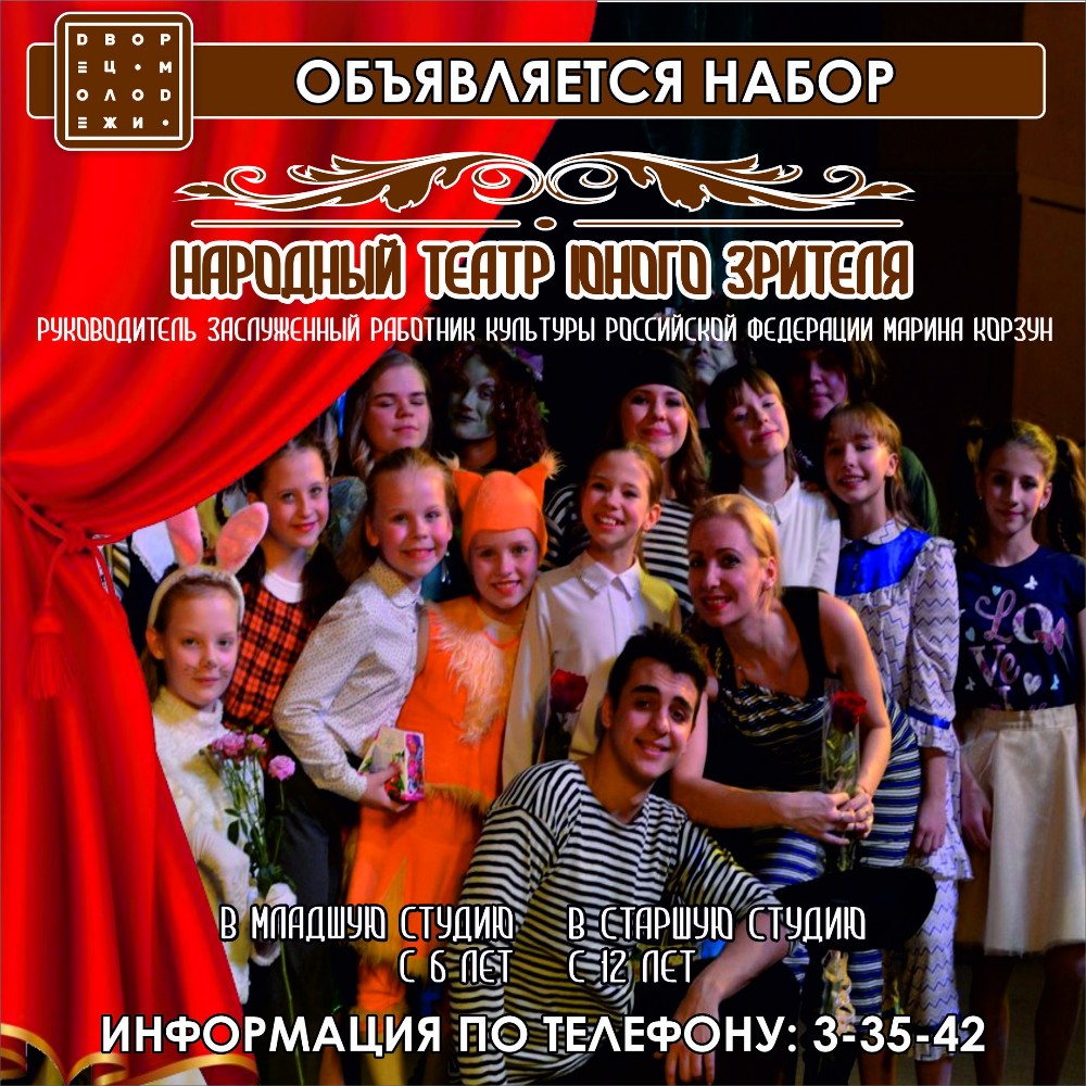 2) Народный театр юного зрителя принимает ребят в младшую группу с 6 лет, в старшую - с 12 лет.