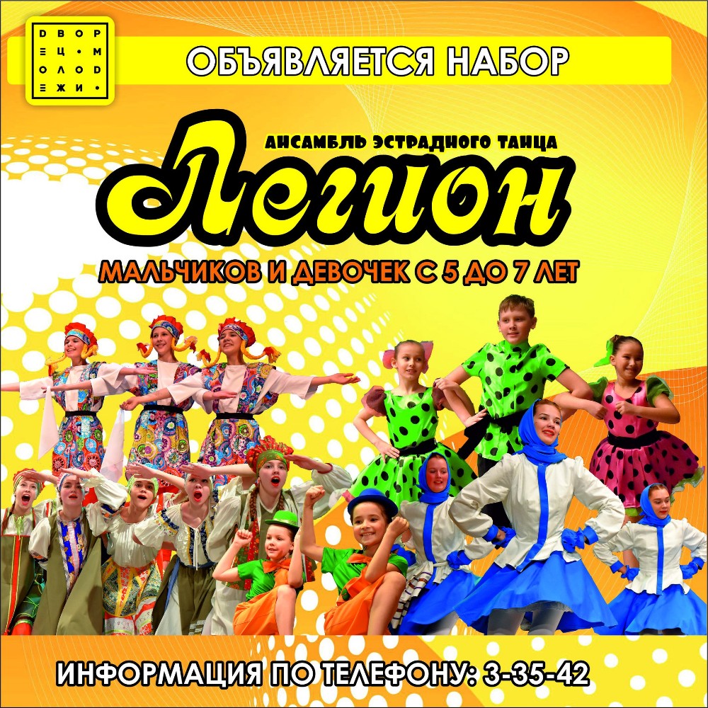 4) В ансамбль эстрадного танца «Легион» (руководитель Котова Екатерина Валерьевна) могут попасть мальчики и девочки с 5-7 лет.