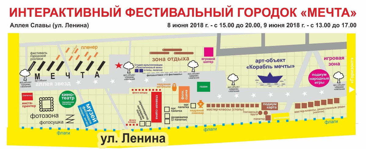 Добро пожаловать на интерактивную площадку, где каждый желающий сможет почувствовать себя настоящим художником. Специально для этого на территории фестивального городка «МЕЧТА» установлены свободные мольберты, на которых можно изобразить свои мечты и творческие планы. Педагоги художественных студий с радостью помогут вам в этом. Площадка работает 8 и 9 июня на территории фестивального городка «МЕЧТА».