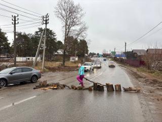 Дорогу на улице 40 лет Октября возле пруда, где недавно произошло поднятие уровня, перекрыла сегодня жительница, которая пострадала от подтопления.
