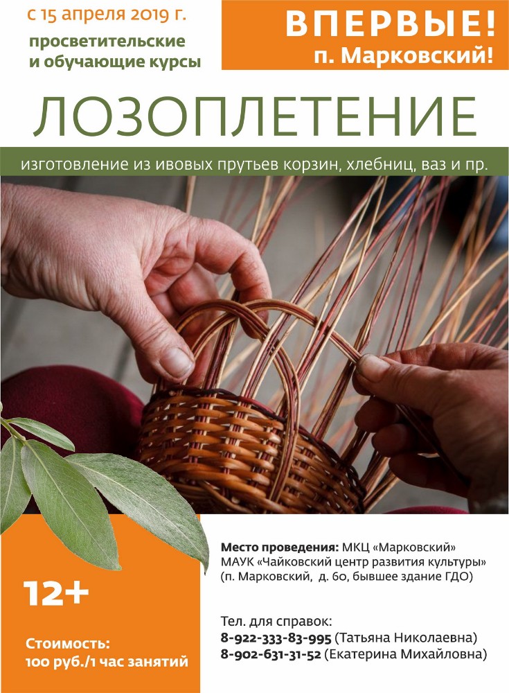 Продолжается набор на просветительские и обучающие курсы «Лозоплетение - изготовление из ивовых прутьев корзин, хлебниц, ваз и пр.»