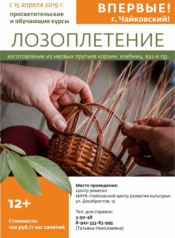 Продолжается набор на просветительские и обучающие курсы «Лозоплетение - изготовление из ивовых прутьев корзин, хлебниц, ваз и пр.»