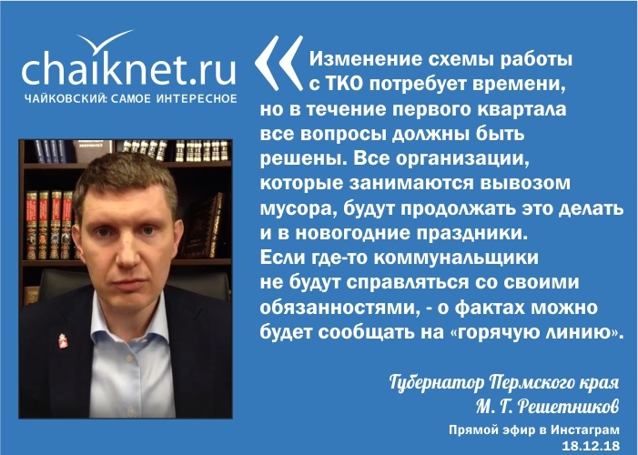 Глава региона взял под личный контроль темы плохого питания в детских домах, работы социального такси, и ряд других, а также подчеркнул, что во время новогодних праздников Пермский край не должен «утонуть» в мусоре – организации, причастные к данному вопросу, будут работать и в выходные дни, а о фактах недобросовестного исполнения ими обязанностей можно будет сообщить на «горячую линию».