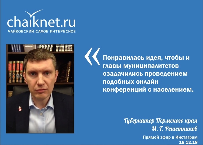 18 декабря состоялась предновогодняя «прямая линия» главы Пермского края в сети Instagram, которая стала уже третьей подобной пресс-конференцией Максима Решетникова в Интернете.