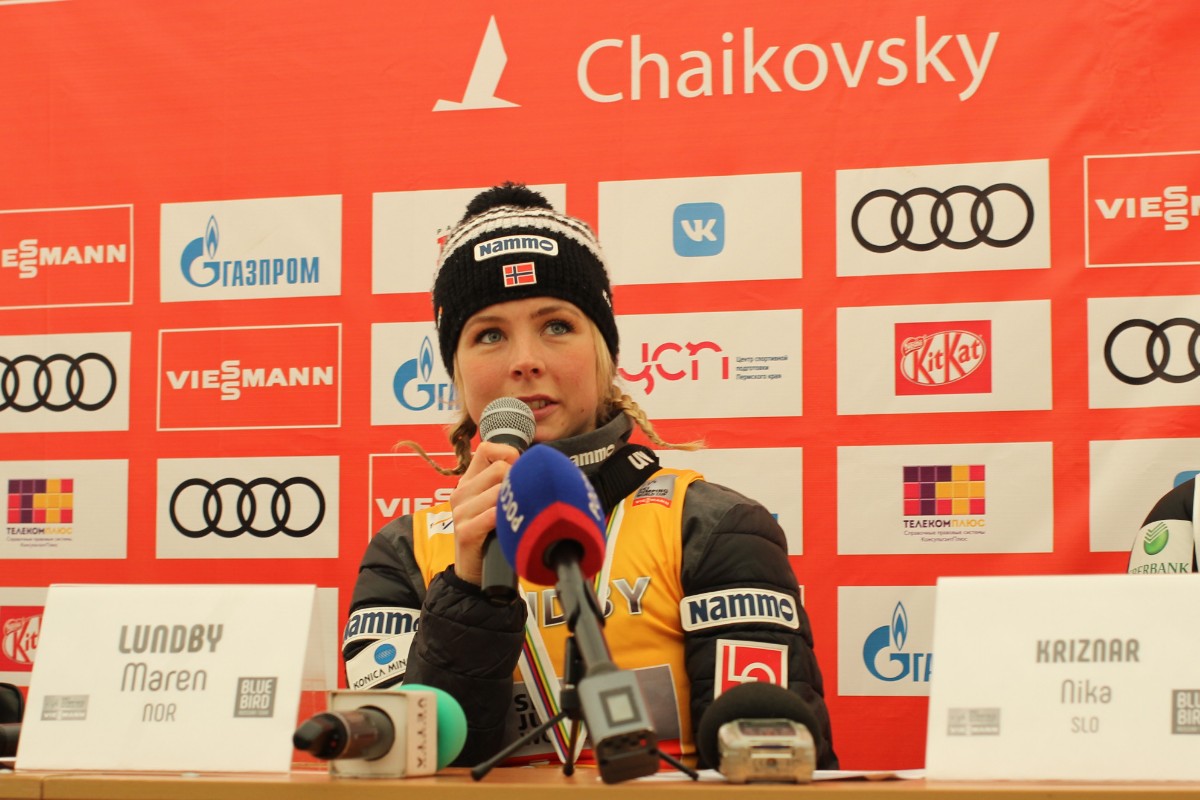 Обладательница «Большого Хрустального Глобуса» Марен Люндби с помощью переводчика поделились впечатлениями о том, как ей «леталось» в Чайковском: «Я смогла улучшить свои результаты. Чем больше высота трамплина, тем больший интерес был прыгать. И моя жёлтая майка означает, что я должна быть лучшей. И у меня это получилось».