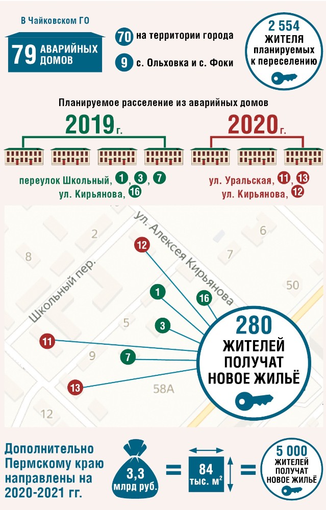 Согласно представленным сведениям, на днях в Чайковском работала межведомственная комиссия по признанию домов жилыми и нежилыми, специалисты обследовали пять таких домов и два дома признали аварийными. Также в это время на нашей территории вели подготовку требований и уведомлений о сносе в разумный срок переселяемых домов. Отмечено, что в программе 2019-2020 годов сейчас значится 14 таких домов.