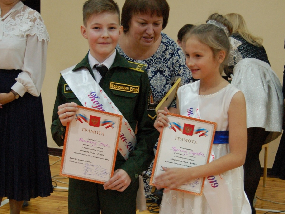 Во все времена кадетские балы отличал дух соревнования. Особо почётно было быть признанным «первым номером» в танцах. Королём и Королевой первого кадетского бала школы посёлка Марковский были избраны учащиеся 5«А» класса - Егор Коряжмин и Елизавета Кузькина. Эта прекрасная юная пара, по словам жюри, обладала и чувством ритма, и чувством пространства, и энергетикой улыбки. Ребята очень органично смотрелись в танце, показывая пример деликатной сдержанности и непринуждённой раскрепощённости одновременно. Наградами были отмечены все танцевальные команды. На память о первом в жизни Марковской школы бале каждый кадетский класс получил почётные грамоты и дипломы.