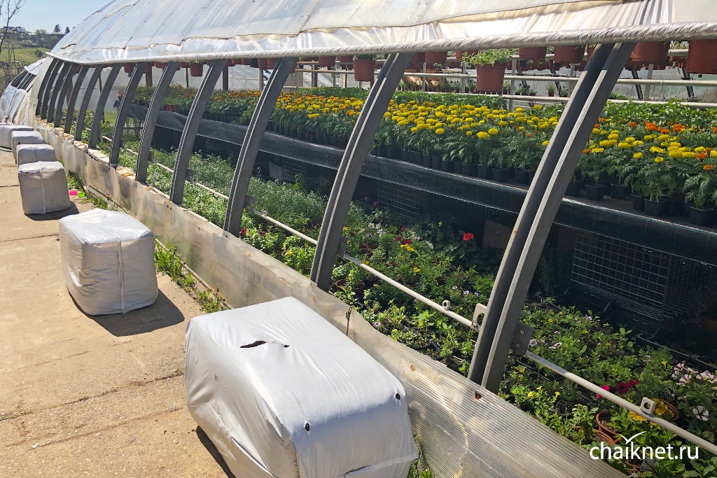 Крестьянско-фермерское хозяйство располагается на 20 сотках придомовой территории. Выращивание саженцев и рассады проводится в двух больших теплицах. В день нашего приезда площадка перед теплицами была заставлена готовой к продаже продукции. «Это всё под заказ, - поясняет Сергей Валентинович, - сегодня в основном занимаемся доставкой, работаем по телефону, через нашу группу Вконтакте. В первую декаду мая будем работать на центральном городском рынке, где разрешили продавать сельхозпродукцию».