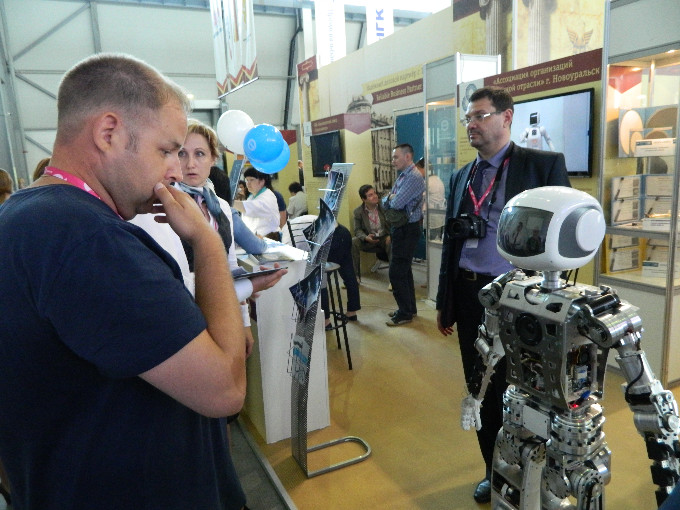 Широко были представлены на Иннопроме достижения в области робототехники. Помимо различных промышленных образцов, на выставке презентовали и двух человекоподобных андроида. Один из них радовал зрителей музыкальным выступлением и танцами. Второй же скромно здоровался и жал протянутую руку.