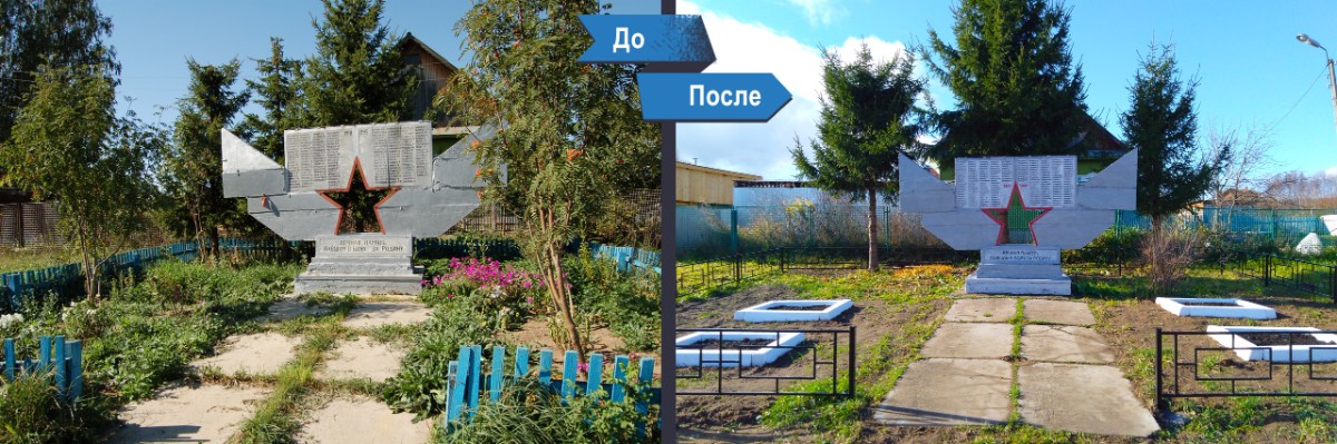 На средства полученного гранта была произведена очистка бетонных элементов монумента от краски, обновлены гравировки с фамилиями. На прилегающей территории убраны старые насаждения, проведена планировка, а сам обелиск покрашен новой краской.