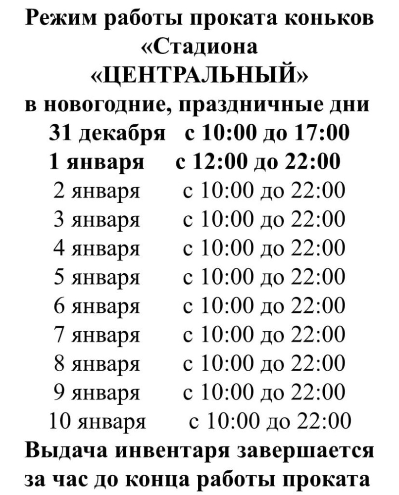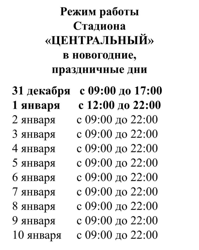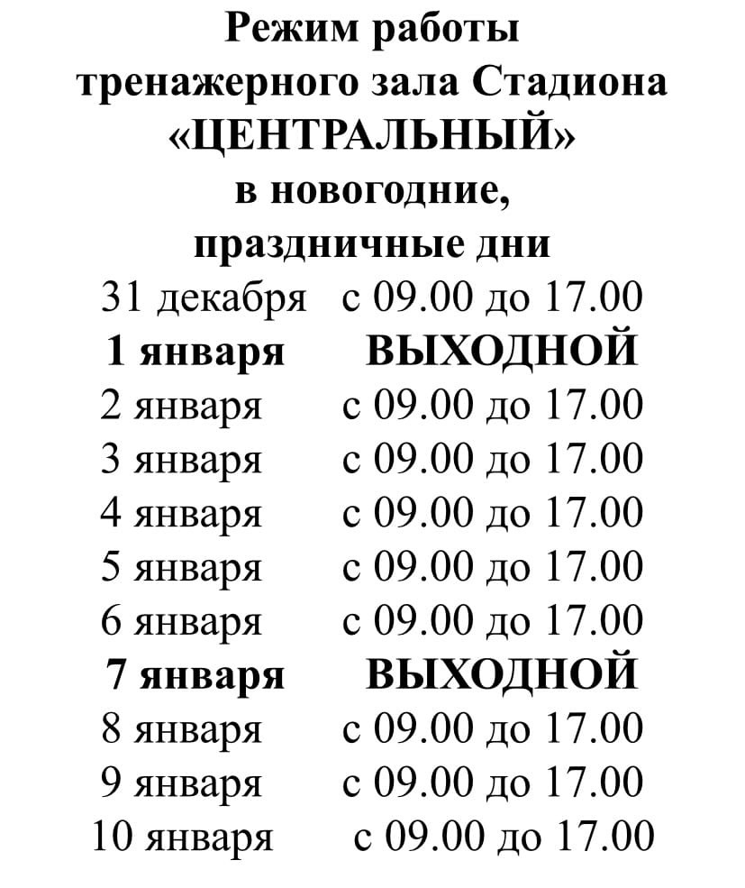Атлетический зал работает с 10:00 до 16:00 (4, 5, 6, 8, 9, 10 января)