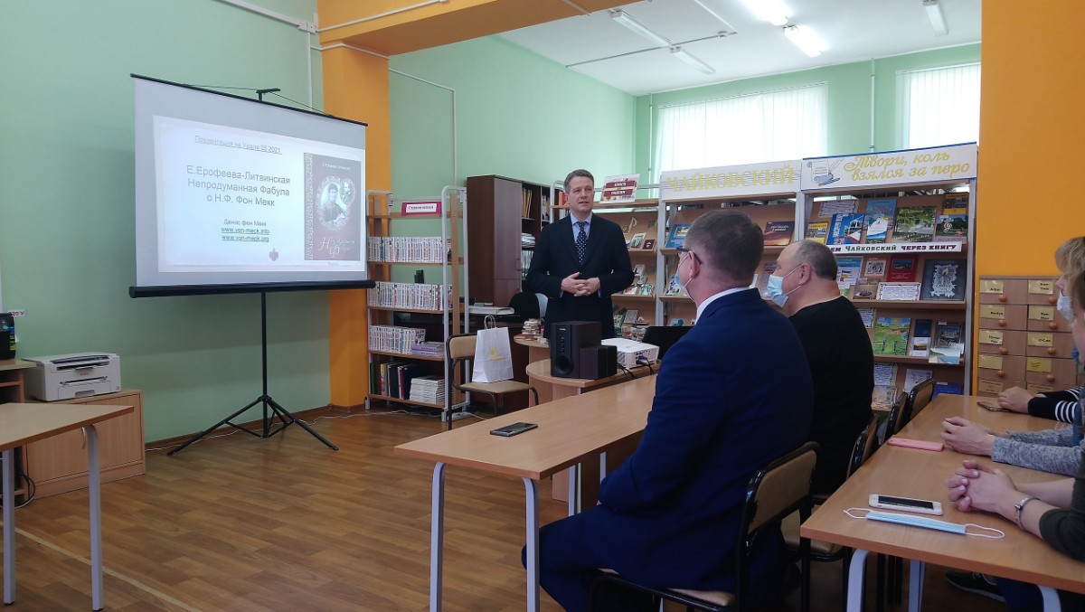 То, что Чайковский стал первым городом, где состоялась презентация новой книги, большая заслуга руководителя проекта «Галактика городов Чайковского» Елены Александровны Имайкиной и исполнительного директора Фонда местного сообщества г. Чайковского Михаила Юрьевича Чернова. Благодаря их тесному сотрудничеству с потомком семей Чайковских и фон Мекк – Денисом Андреевичем фон Мекк, мы, жители города, носящего имя великого композитора, имеем возможность так близко соприкасаться с нашим культурным наследием.
