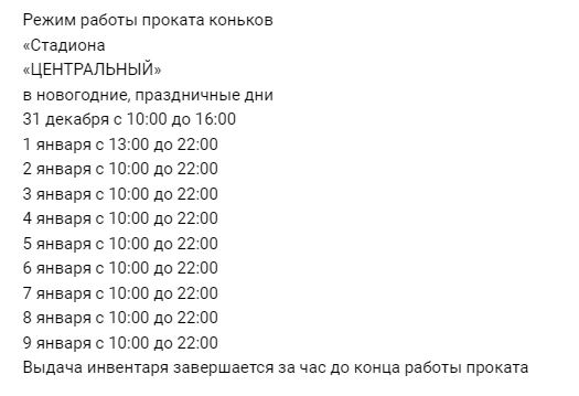 31 декабря, 3, 5 и 8 января – с 8.00 до 13.00
