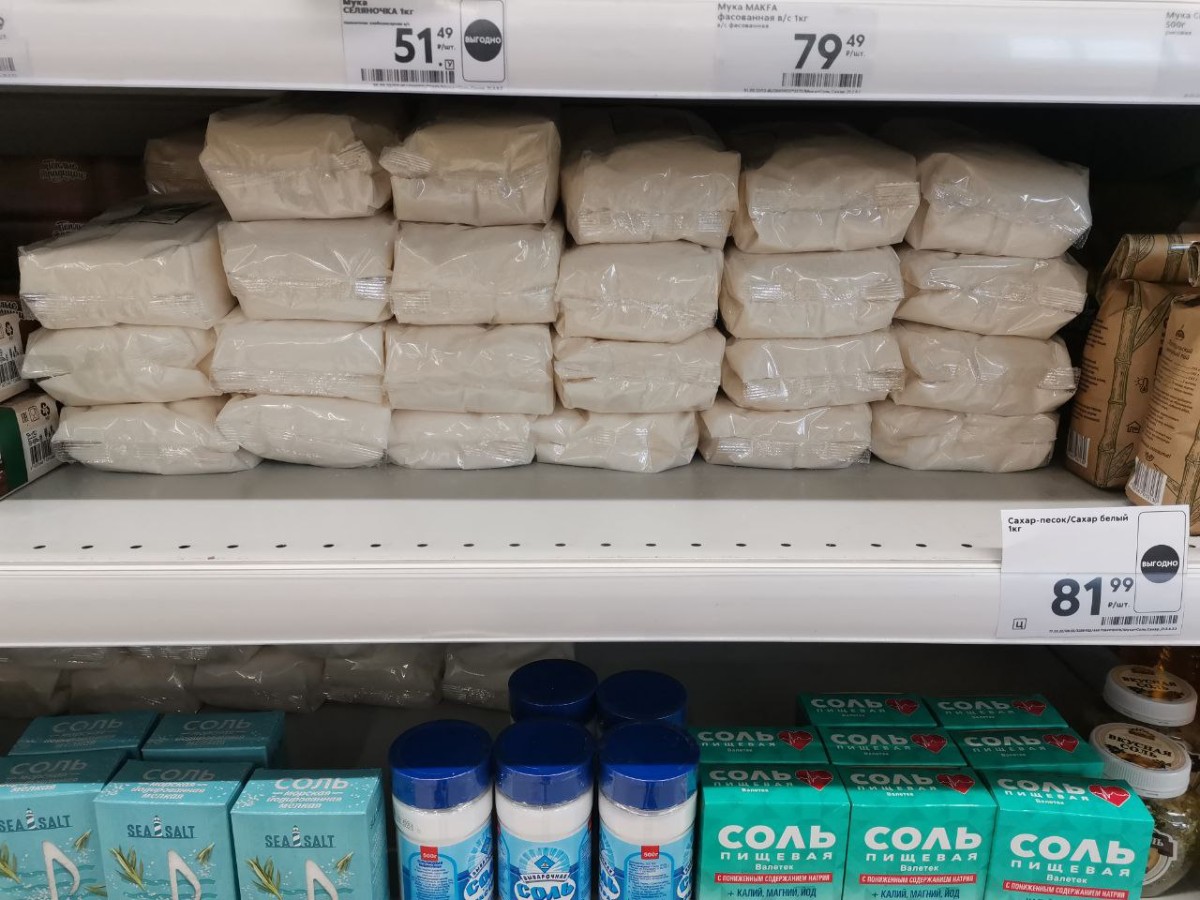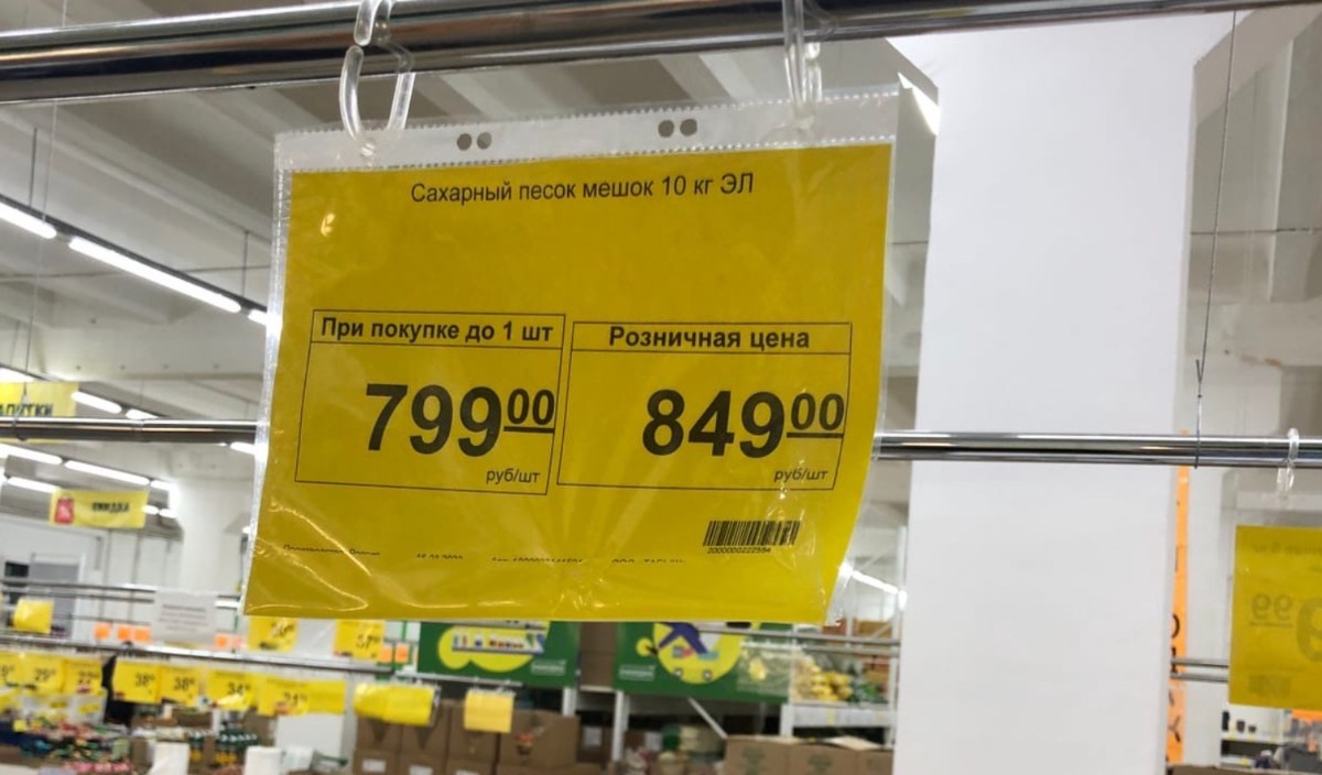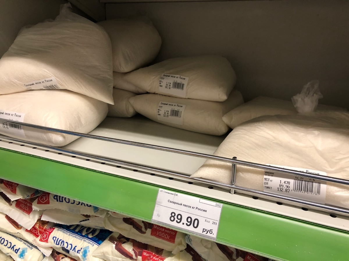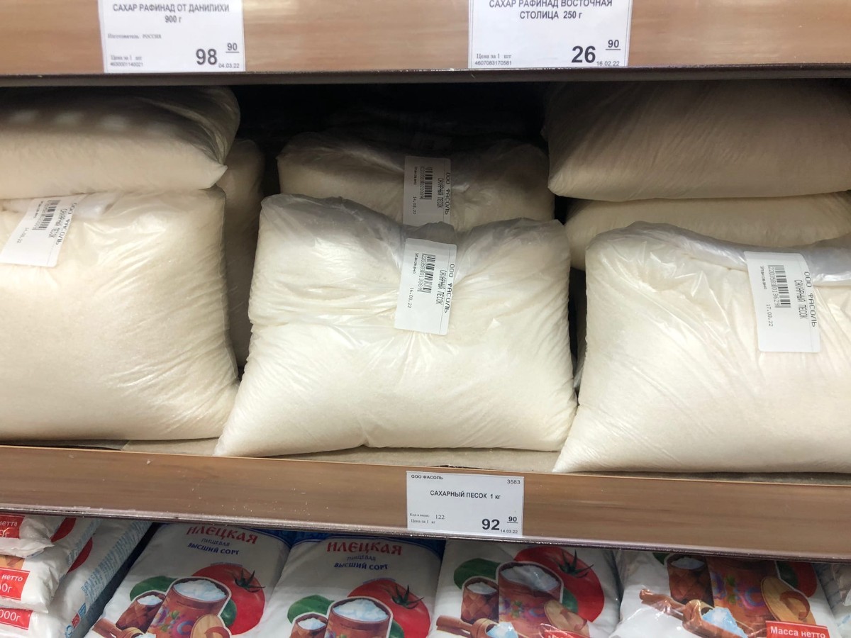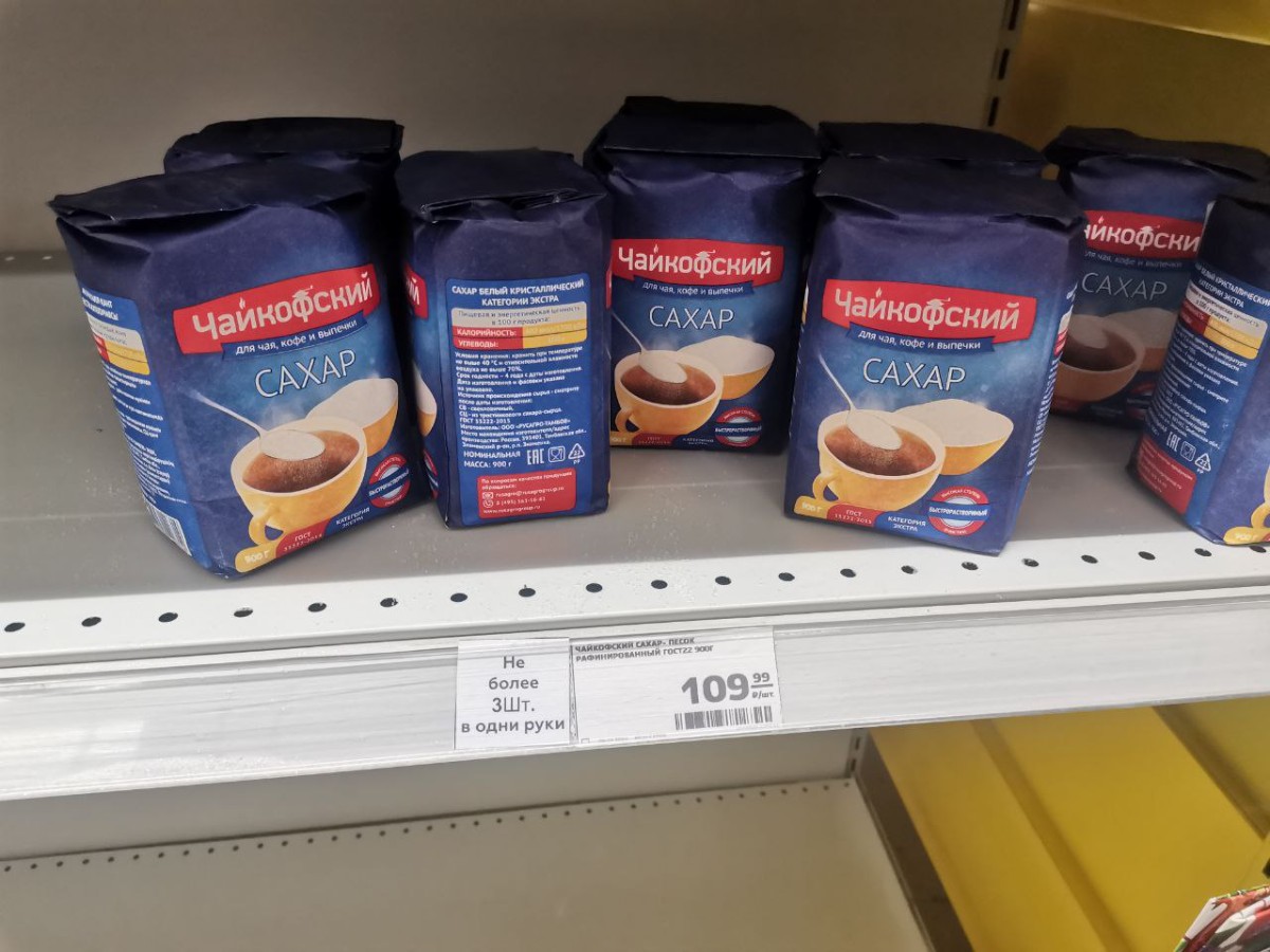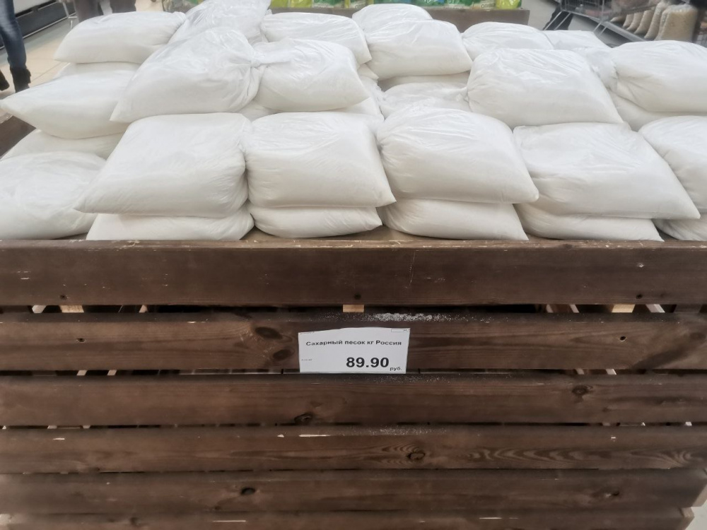 В остальных крупных магазинах его либо нет в наличии, либо есть, но в более дорогом ценовом сегменте. Например, цена на оставшийся сахар в «Магните» по адресу ул. Ленина, 61А – 109,99 руб./кг.
