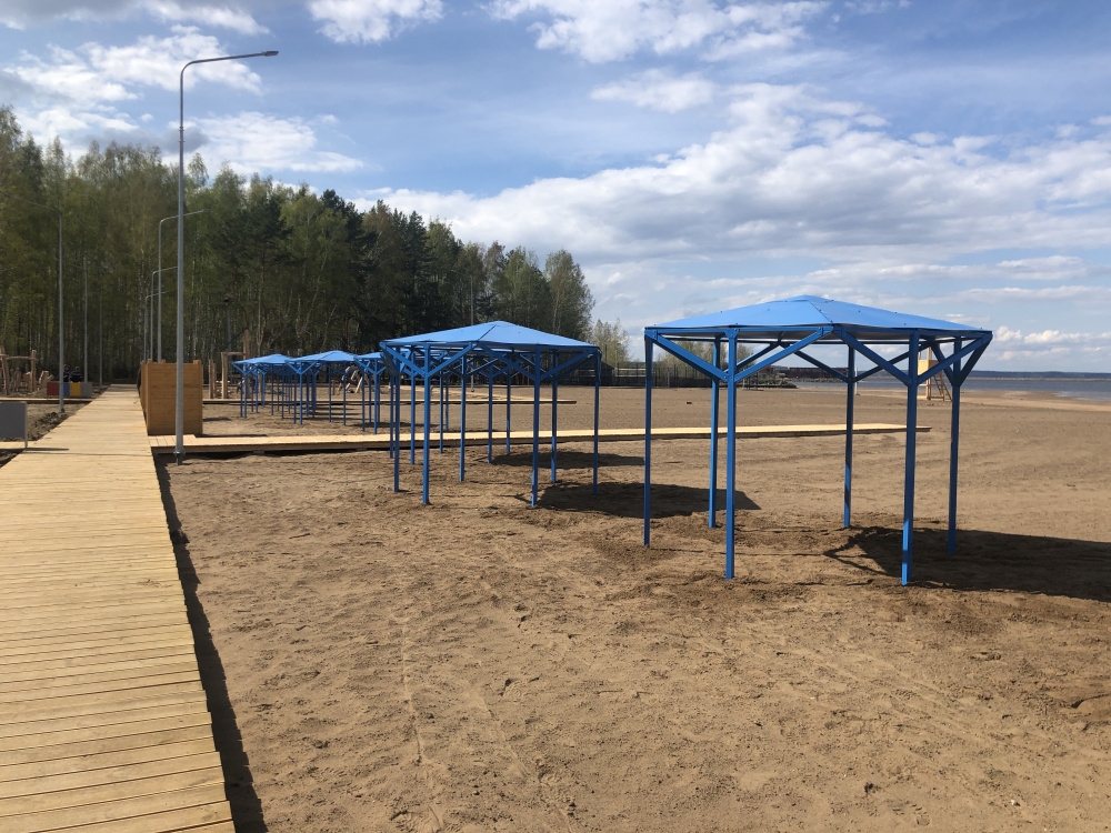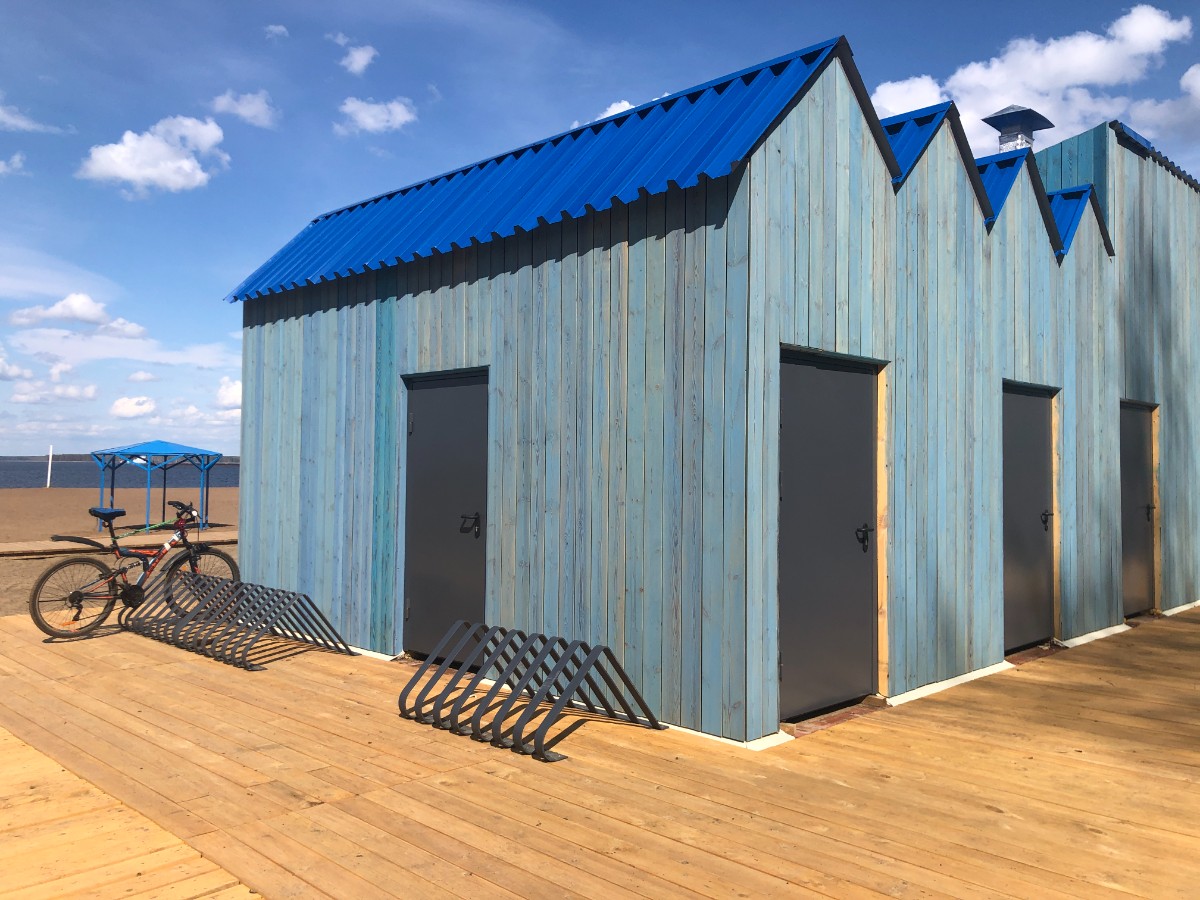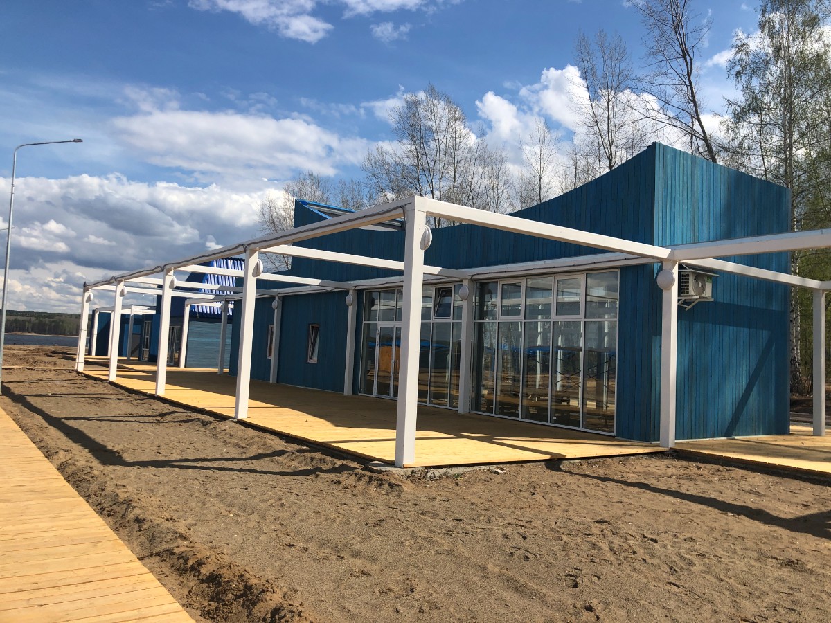 - на пляже установлено пять павильонов. В недавнем прямом эфире по благоустройству начальник Управления строительства и архитектуры Чайковского округа отметила, что в этих павильонах будет располагаться большое кафе, пункт проката спортивного инвентаря, кофе-поинт, медпункт, туалет;