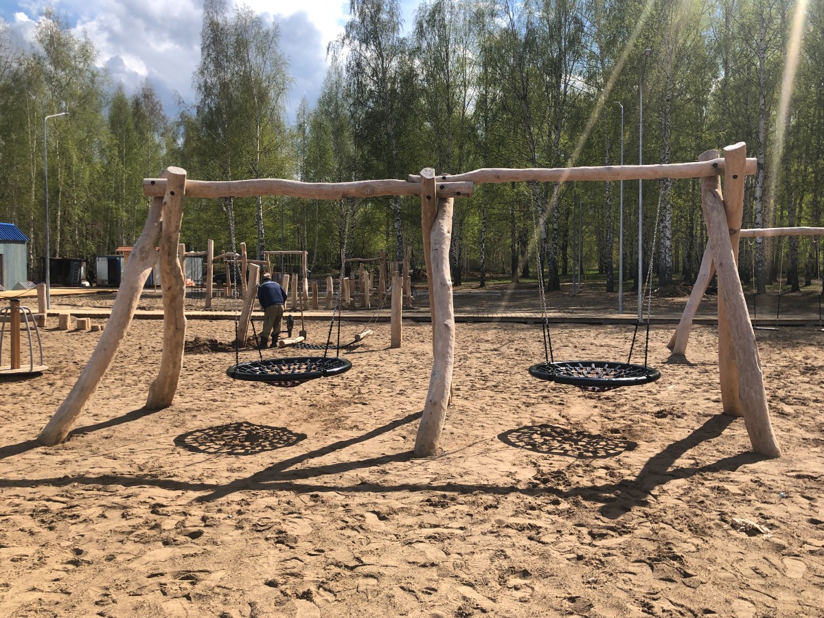 - появилась красивая стилизованная детская площадка, на которой расположились четыре качели;