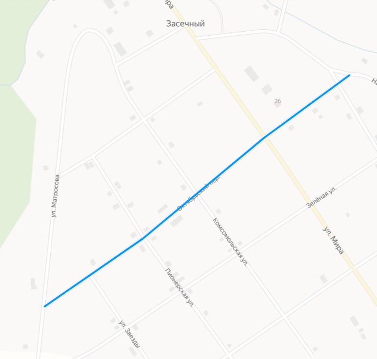 Также будет произведён ремонт автомобильной дороги по пер. Октябрьский в деревне Засечный: