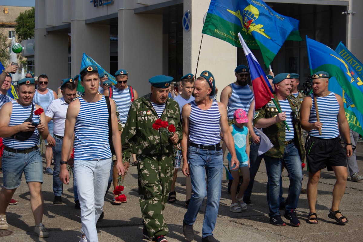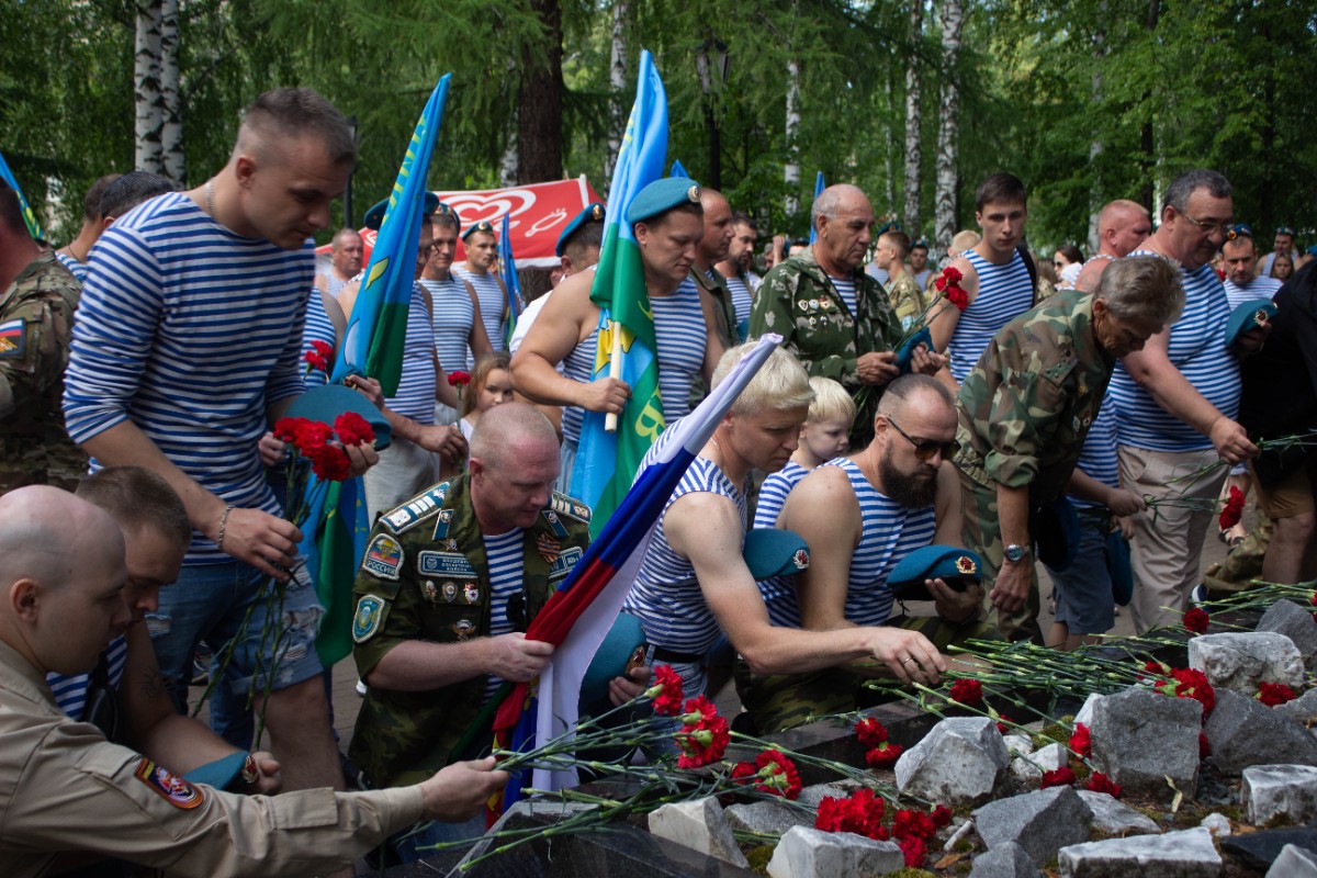 Вокруг памятника погибшим солдатам в этот день выстроилось настоящее братство Воздушно-десантных войск. После возложения цветов, напутствующих слов и поздравлений колонна, готовая в любую минуту встать на защиту совей Родины, отправилась на спортивную площадку Центрального стадиона.
