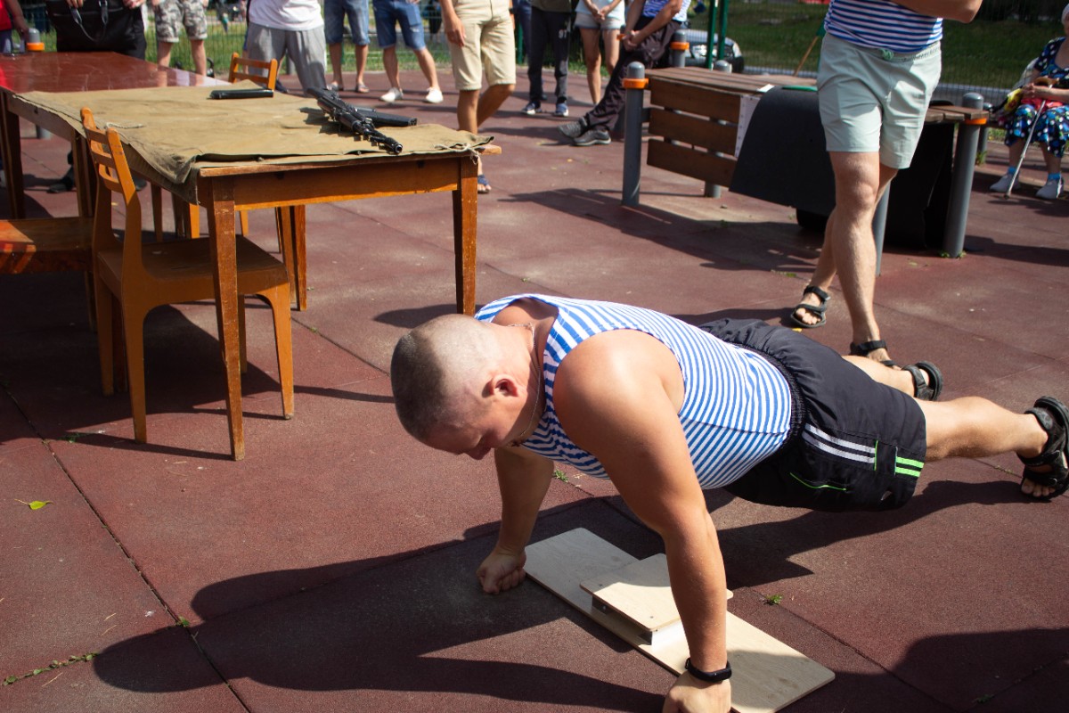 В спортивной подготовке необходимо было за определённое время сделать как можно больше подтягиваний и рывков гири весом 24 кг с прямой рукой. В военной – комбинацию из 25 отжиманий, разборки и сборки автомата, а также зарядки магазин патронами.
