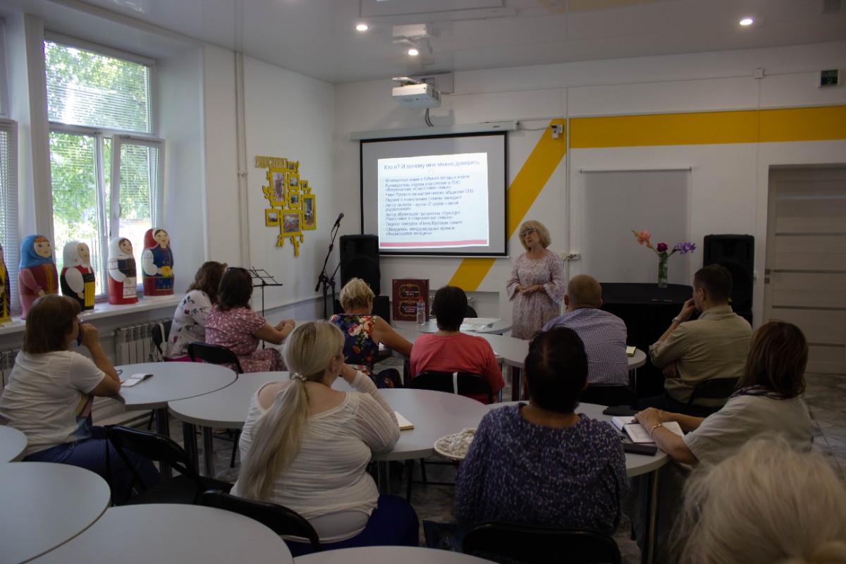 Необычная встреча прошла на коммуникативной площадке Экспоцентра «Родословие». Ведущей этого полезного мероприятия выступила гостья из Санкт-Петербурга Елена Черных – руководитель отдела родословия в РОО «Возрождение «Счастливая семья», член Русского генеалогического общества Санкт-Петербурга, автор обучающих программ по составлению родословной, педагог с многолетним стажем, методист и, что немаловажно в этом деле, многодетная мама и бабушка пятерых внуков.