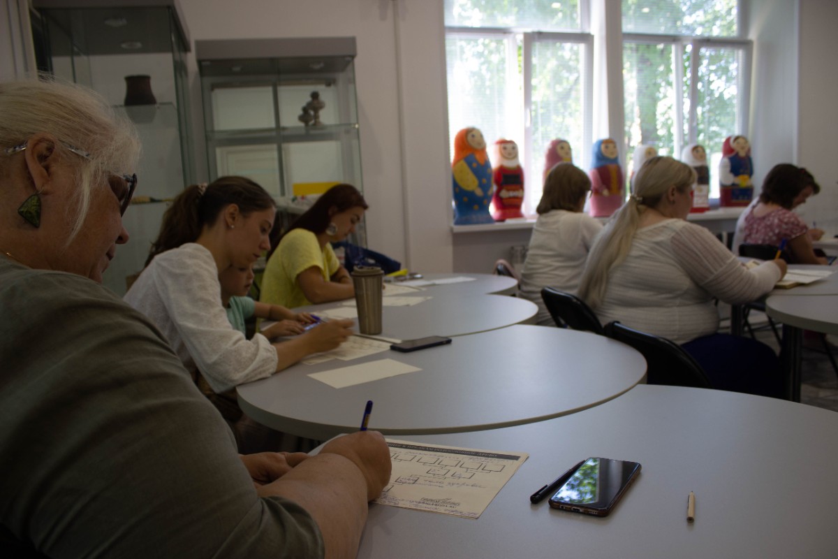 Во второй половине встречи присутствующим предложили самим попрактиковаться в составлении родового древа до четырёх поколей и своего персонального листа, в котором должна содержаться вся основная информация о человеке, в том числе указывают ближайших родственников супруги или супруга.