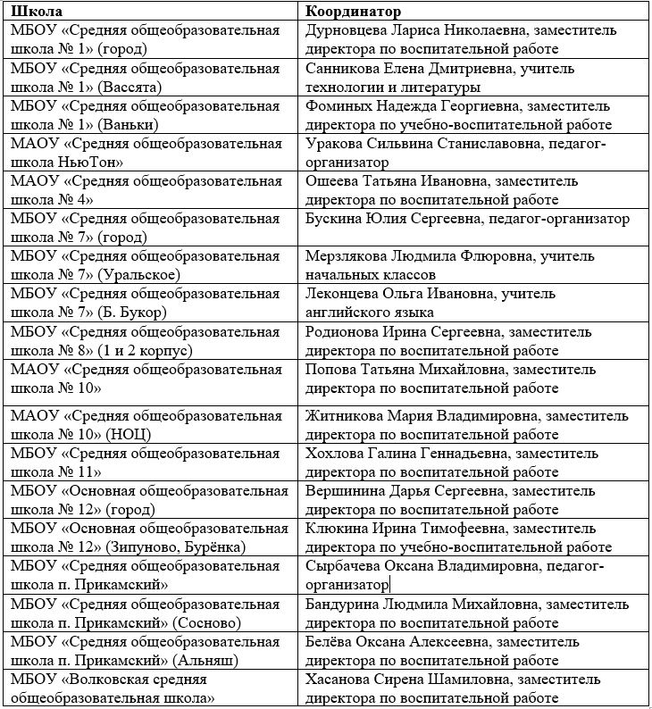 В конкурсе принимают участие 18 школ. Список школ и координаторов конкурса, которым необходимо сдать свои работы до 13 декабря: