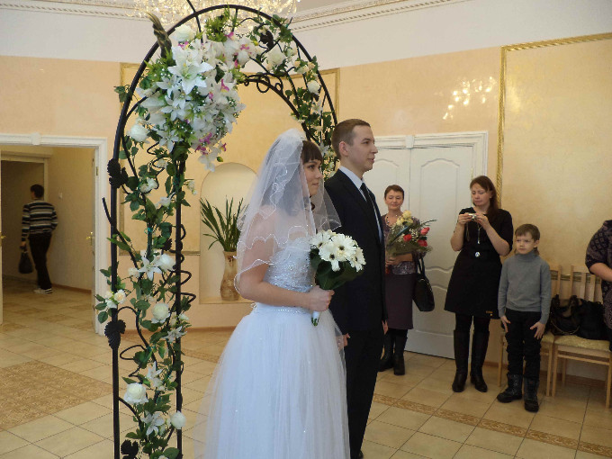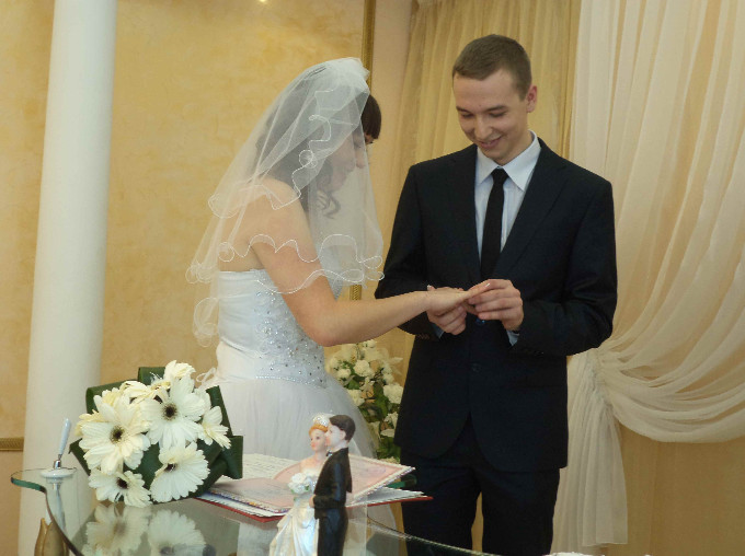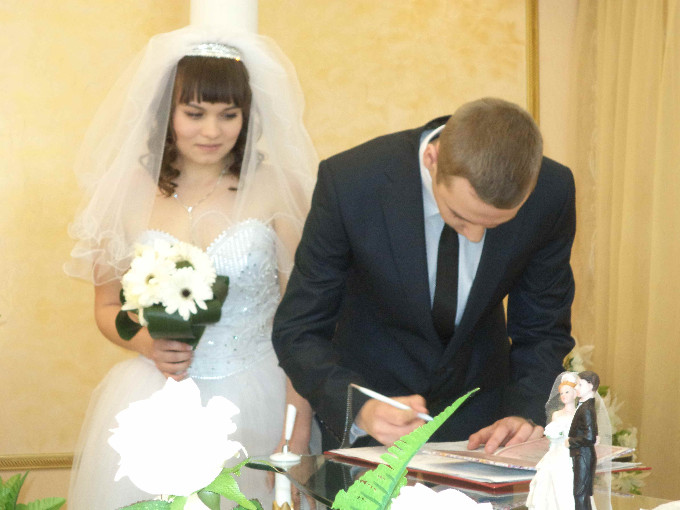 Мария и Андрей Онорины – одни из тех, кто сегодня поженился. 19-летняя Мария – учащаяся ЧИК (индустриального колледжа), а 22-летний Андрей уже работает, трудится в «Уралнефтесервисе». «Мы знакомы два с половиной года или даже чуть больше, но точно около трех лет», - наперебой рассказывают молодожены, - «Почти год мы живем вместе. И вот – решили пожениться! Специально выбирали дату регистрации, и захотели расписаться именно 14 февраля, в день всех влюбленных. Мы оба очень рады, но немного волнуемся и боимся – такого у нас обоих в жизни еще не было».