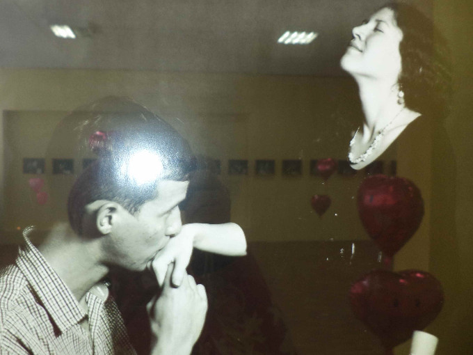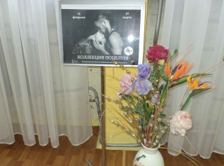 На фотографиях, развешанных стройным рядом по стенам, изображены самые различные поцелуи: вот мама целует дочку, вот влюбленные страстно целуются, вот поклонник скромно целует руку восхищенной даме, вот сестры обнимают друг друга и одна другу целует в щеку… А есть и необычные: вот девушка целует гитару или девушка целует маракасы… Мужчина целует курительную трубку…