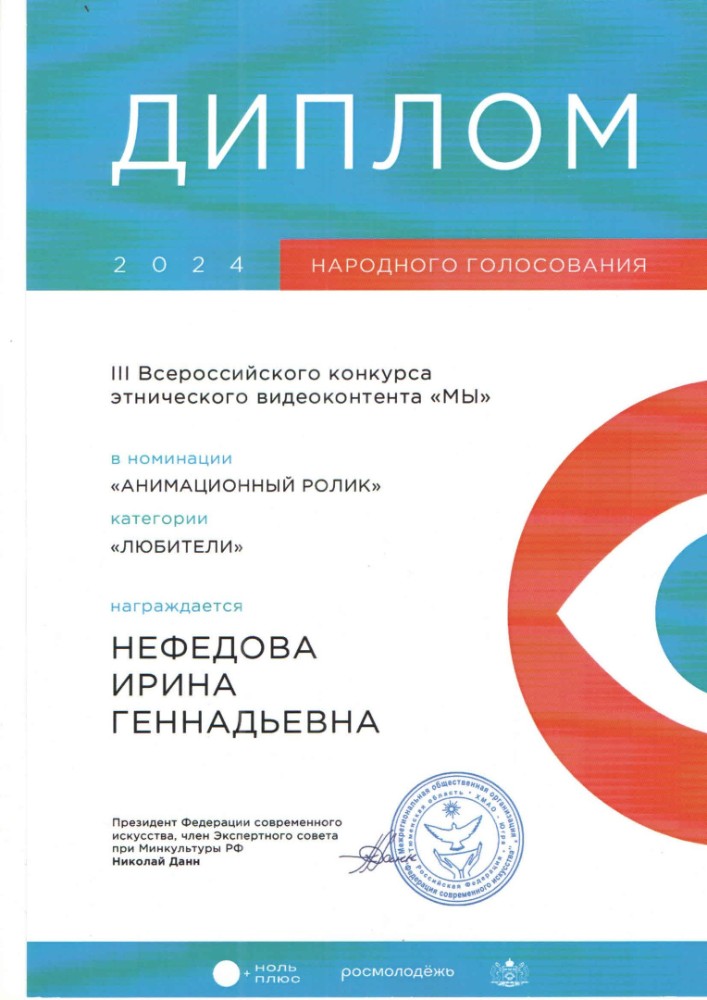 Мультфильм воспитанников детской студии мультипликации «Ёжики» победил в народном голосовании Всероссийского конкурса этнического контента «МЫ» в номинации «Анимационные ролики» среди любителей.