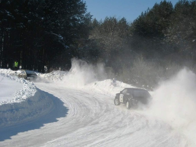 В каждом из 4 классов основных заездов автомобилей прошло по три выезда, по результатам которых определились победители гонки. «Взрослые» классы «Д2К» и «Д2Н» («классика» и «восьмерки») в каждом из заездов проезжали по 8 кругов дистанции, а «малыши» («окушки» и «багги») из-за холодной погоды – по 4 круга. Не обошлось без вылетов на бруствер и «ушей» – но достаточно мягкие брустверы и оперативное вмешательство служб соревнований не задерживали гонку, и участники продолжали свою борьбу. В классе «Д3-багги» безоговорочную победу одержал Чайковский пилот Иван Чепкасов. В классе «Д2-юниор» Равиля Ильясова из Ижевска подвела его «Окушка» и два заезда прошло без него. Победу одержал Евгений Калинин из г.Глазова. Самыми зрелищными были заезды кузовных автомобилей. «Классика» и «восьмерки» стартовали одновременно. На трассе постоянно проходила борьба, при прохождении поворотов пилоты то и дело опирались на бруствера, поднимая за собой снежные вихри. Лидерство в классе «Д2К» захватил пермский пилот Евгений Акимов на своей «семерке». Вкаждом из заездов он опережал своих молодых соперников из Чайковского. В классе «Д2Н» встретились три опытных пермских пилота. Высокие скорости переднеприводных автомобилей, красивое прохождение каждого из поворотов трассы, снежная пыль в ярких лучах солнца стали просто завораживающим зрелищем.
