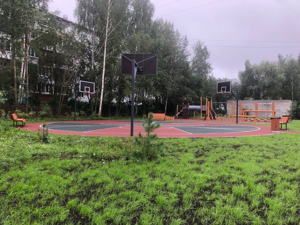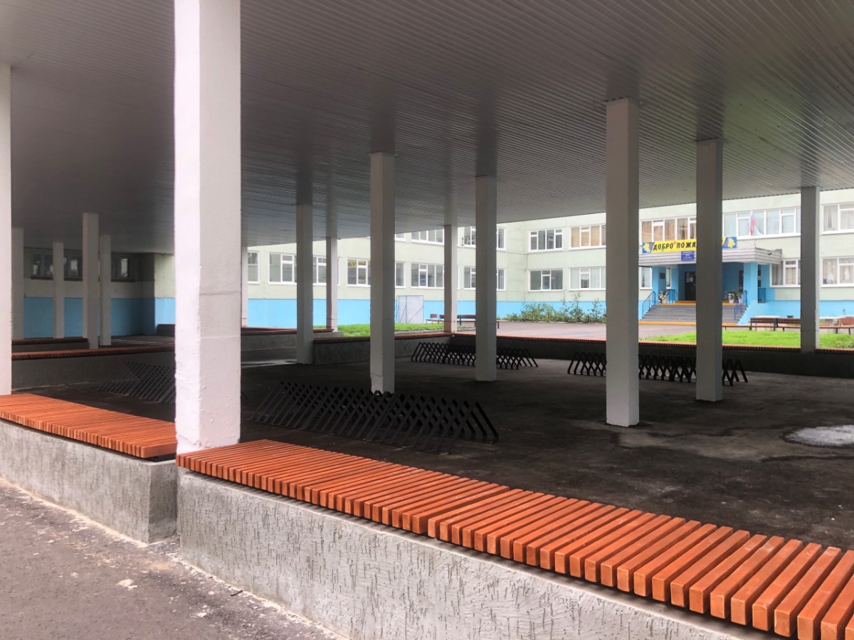 Так, например, во дворе 7-ой школы обустроена площадка для стритбола, заасфальтирована территория вокруг здания. Организована велопарковка и места для строевой подготовки.