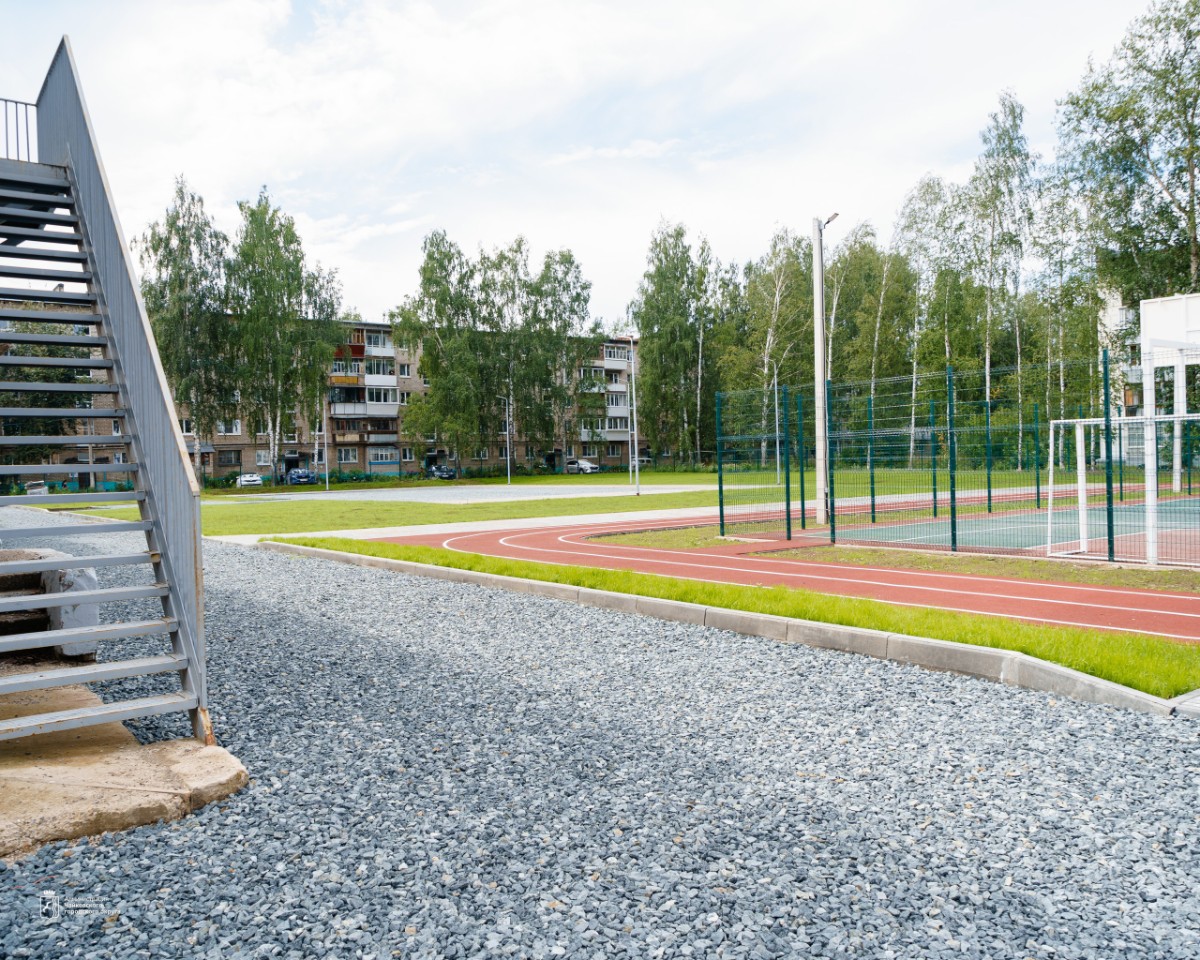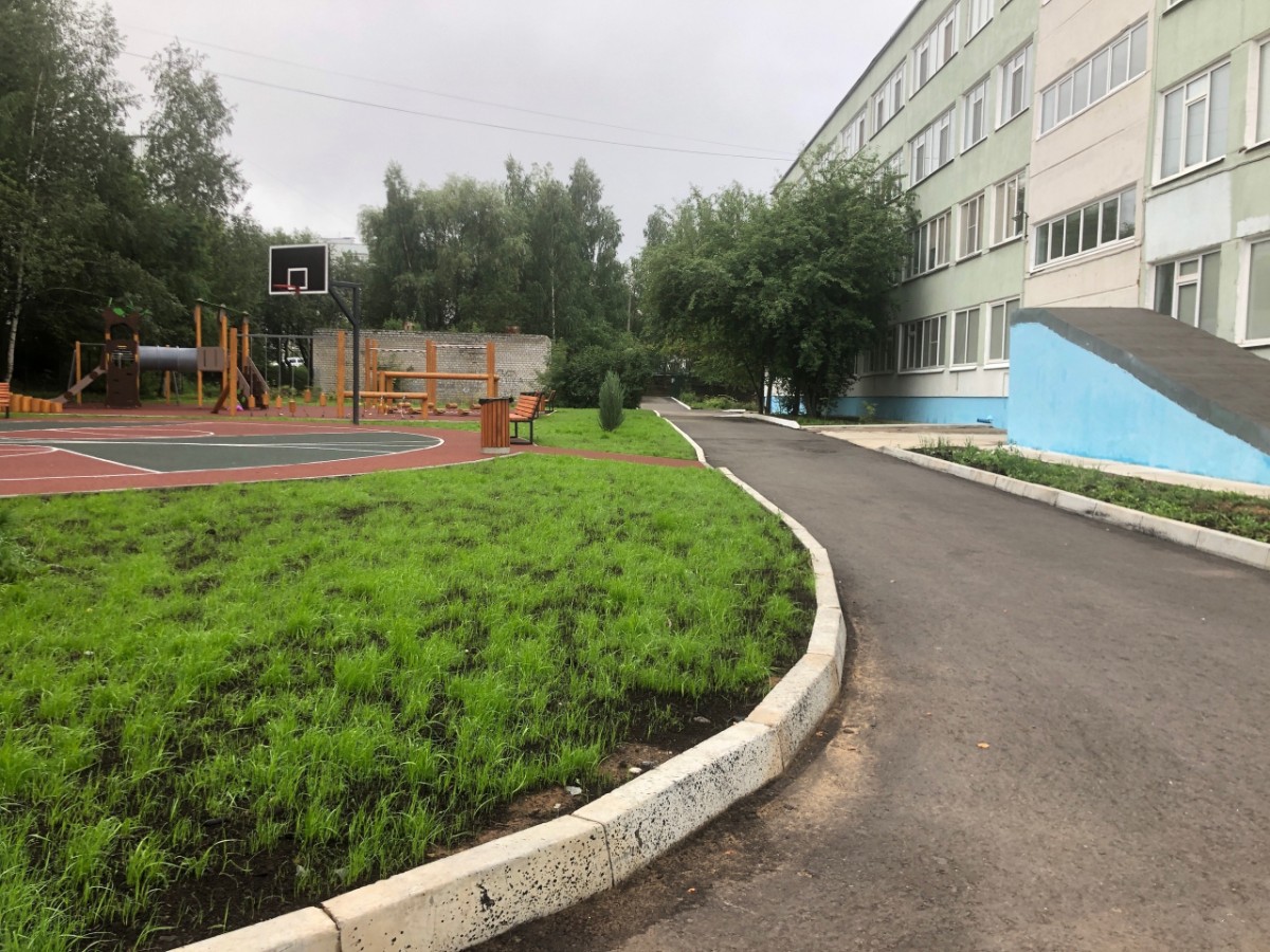 В младшем блоке гимназии им. Алексея Кирьянова завершили благоустройство, начатое в прошлом году: сделали беговую дорожку, спортивную площадку, свели аварийные деревья.