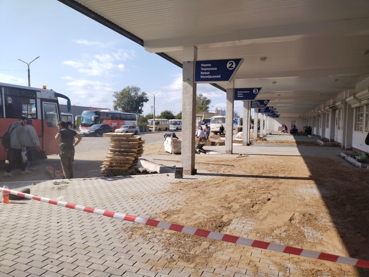 На городском автовокзале частично заменили покрытие перрона. Готовы восемь из десяти платформ.