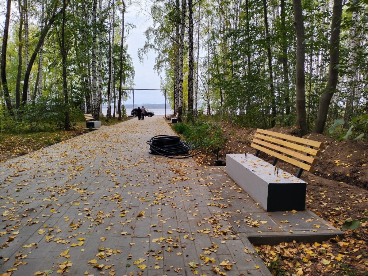 В данный момент завершается установка скамеек, урн, осуществляется монтаж освещения с заменой старых фонарных столбов. Также проводятся работы по замене арки входной группы со стороны реки Камы.