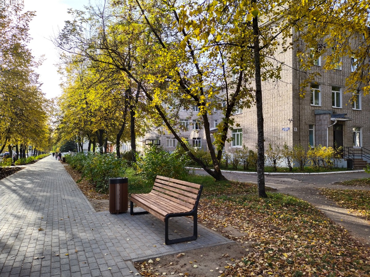 На этом участке дороги была выложена брусчатка, обустроено наружное освещение, установлены восемь урн и две скамейки, а вдоль дороги организованы заездные карманы для парковки автомобилей.