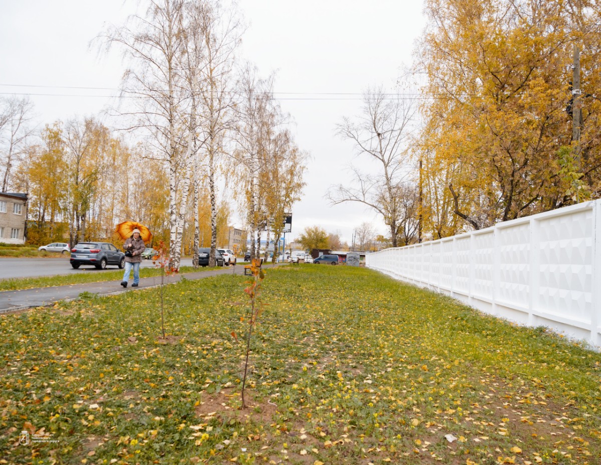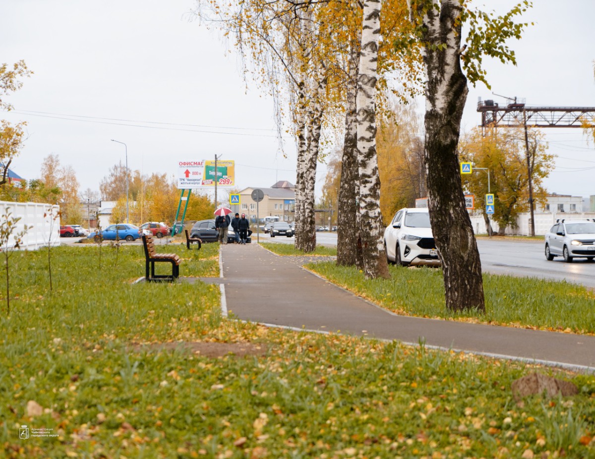 Одним из результатов этого соглашения стал обустроенный в августе этого года тротуар напротив здания мирового суда по ул. Промышленной с организацией заездного кармана. Также силами предпринимателя были сведены многолетние заросли деревьев и кустарников, посеян газон, высажены яблони, установлены скамейки.