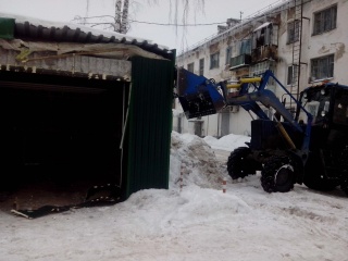 И вот, сегодня около дома по ул. Мира, 17/1 сегодня сносят эти самые несколько самовольно построенных гаражей.