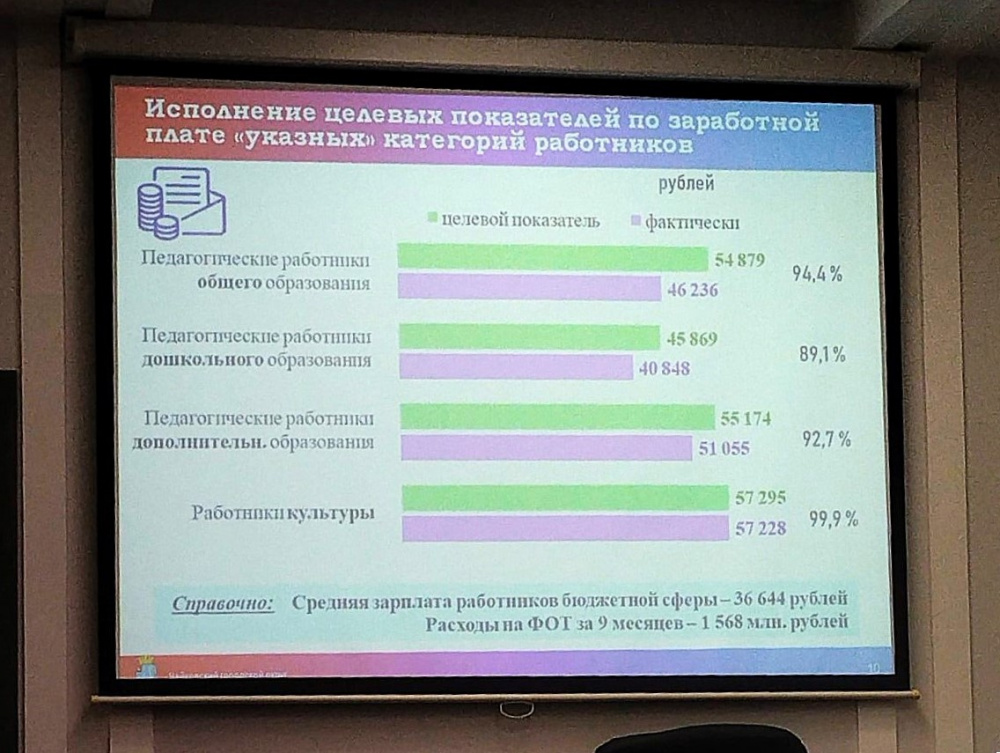 Рассказывая об исполнении целевых показателей по средней заработной плате работников образования и культуры, Лариса Вениаминовна отметила, что максимально приблизилась к отметке в 100% зарплата сотрудников культуры. По состоянию на 1 октября, она составляла 57 228 рублей (99,9% от целевого показателя).