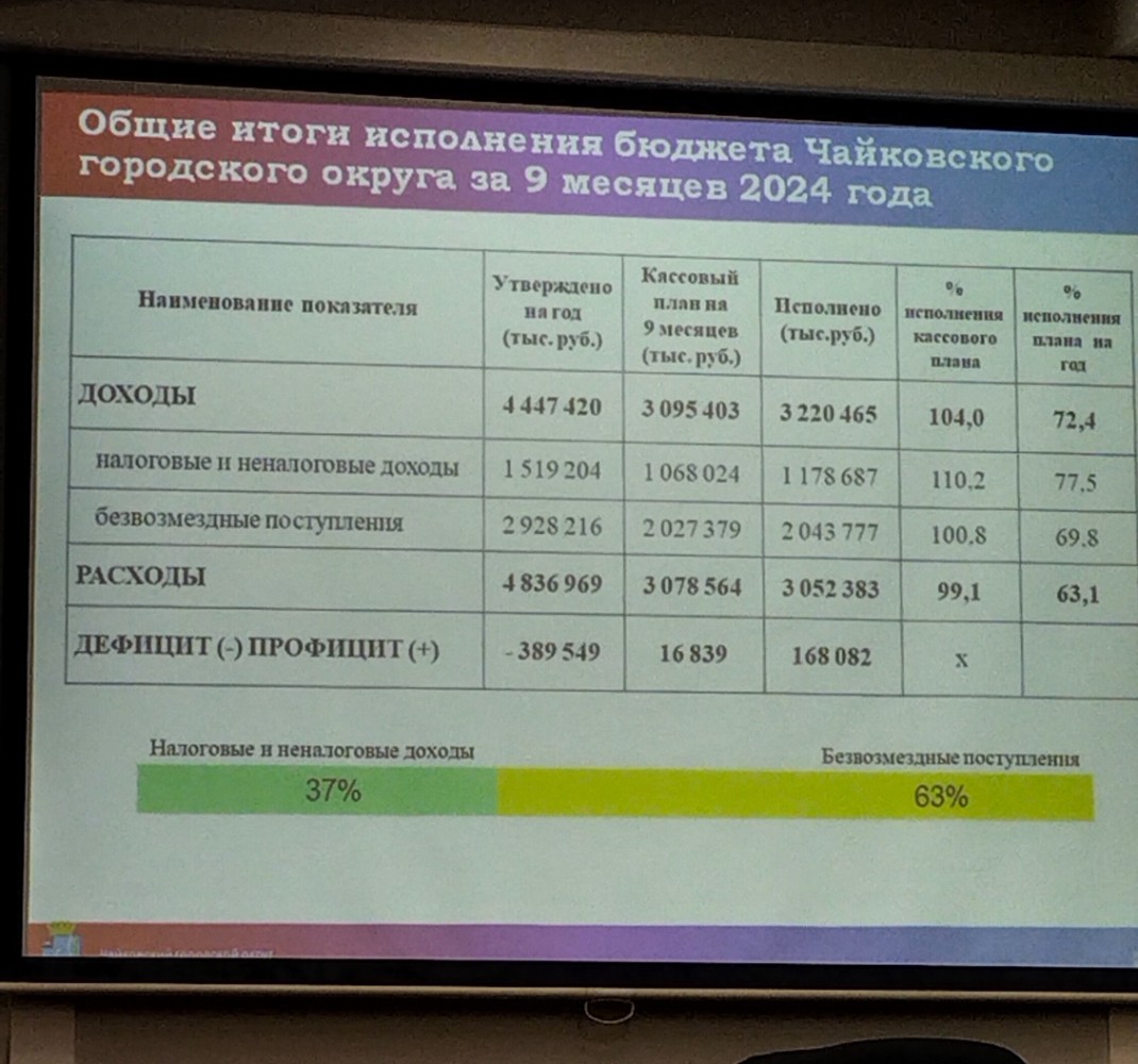 Начальник управления финансов администрации округа Лариса Мусихина рассказала об исполнении бюджета Чайковского городского округа за 9 месяцев 2024 года.