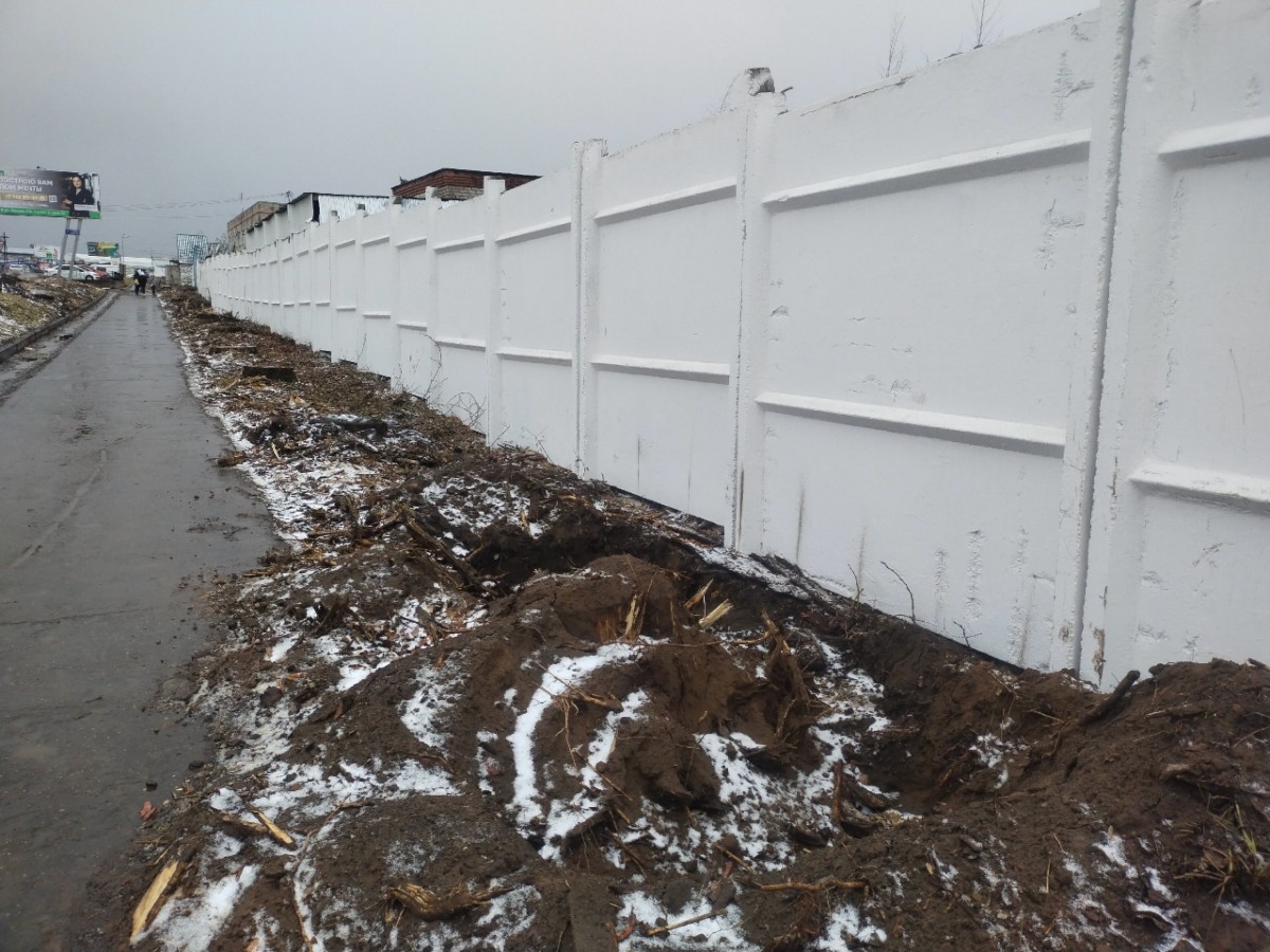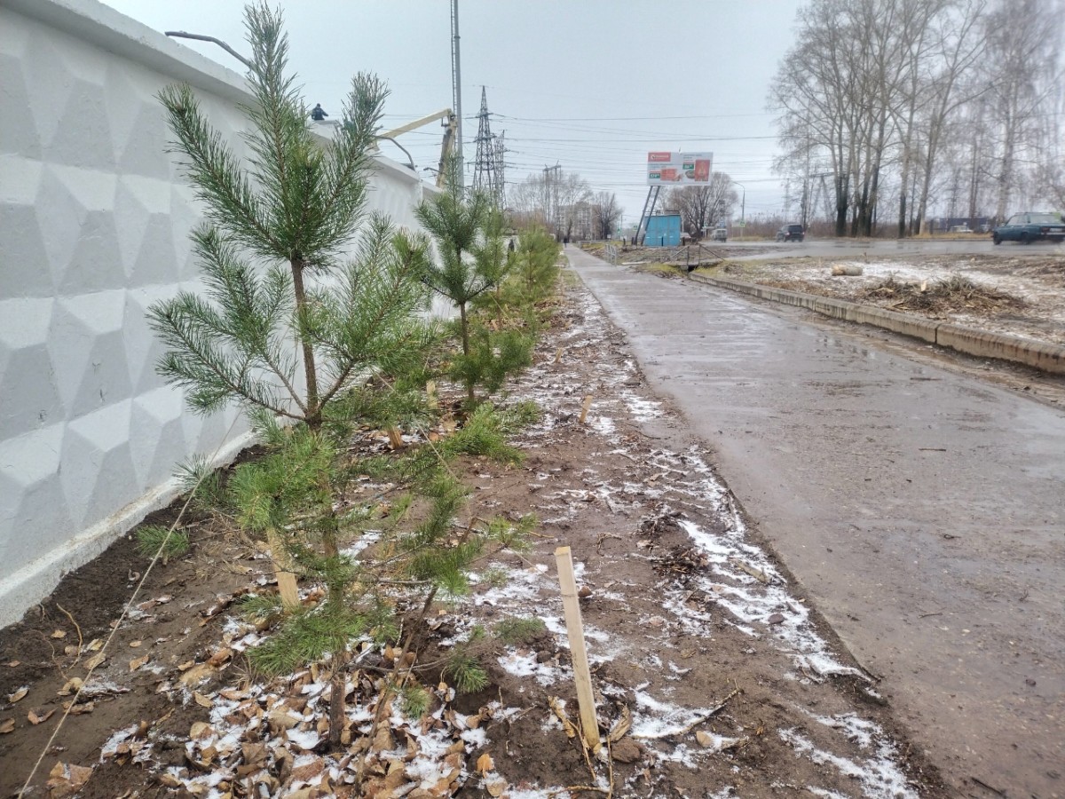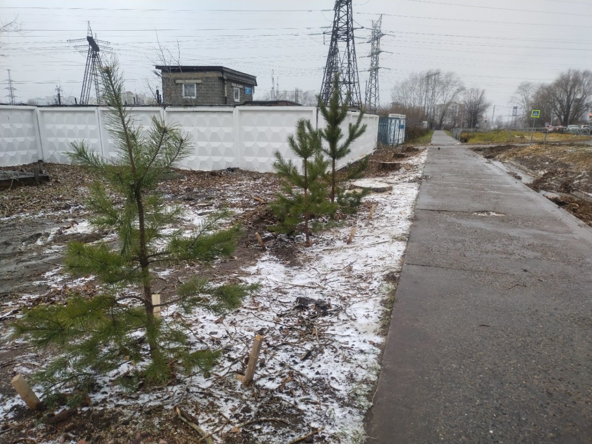 Часть запланированных работ уже сделана – железобетонный забор окрашен в белый цвет, сведены аварийные деревья, произведена частичная высадка сосен взамен сведенных тополей. На 1 ноября было высажено 25 саженцев, в дальнейшем их планируют высадить по всей протяженности пешеходной зоны.
