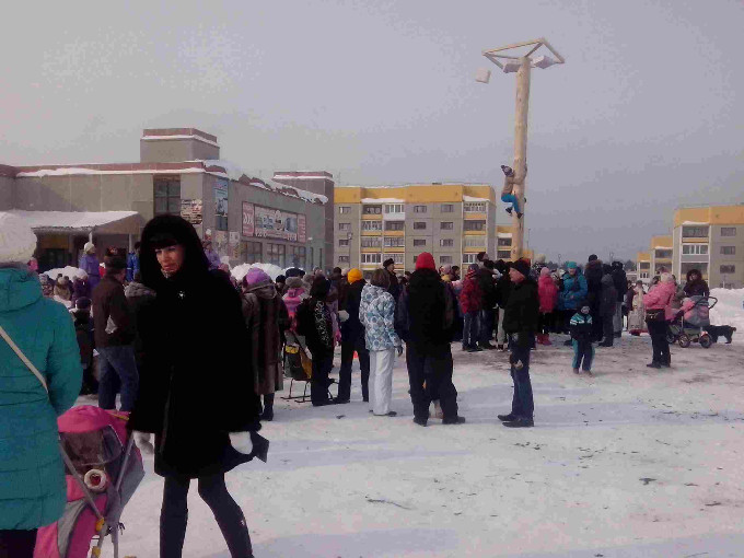 В Марковском Масленицу также отметили с размахом. Около Дома Офицеров народные коллективы исполняли песни, танцевали, загадывали загадки и устраивали конкурсы для всех желающих. Здесь было также немалое количество народа. Люди могли поучаствовать и в традиционном конкурсе – лазании по гладкому шесту за подарками. Нашлось развлечение и для самых маленьких ребятишек.