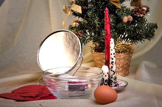 Возьмите свежее яйцо, проделайте в нем маленькую дырочку и осторожно вылейте содержимое в стакан с водой. Когда белок свернется, по форме, которую он принял, нужно угадать свое будущее. Вид церкви означает венчание, кольцо — обручение, куб — гроб, корабль — командировку (мужчине) или возвращение мужа из командировки (женщине). Если белок опустился на дно — быть в доме пожару.
