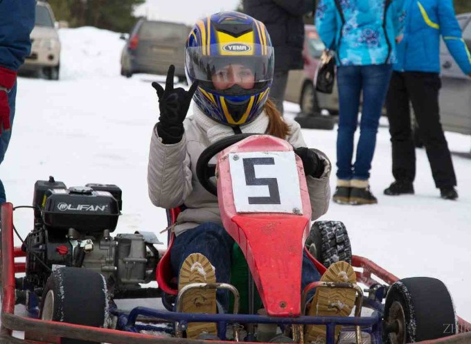 Участницам были предложены «детские» автомобильчики – карты. Однако состязания проводились по-взрослому – в них были тренировочные, основные и финальные заезды. Некоторые из участниц впервые сели за руль маленькой быстрой машинки и, тем более, впервые стартовали в полном контакте с соперницами, однако показали себя достойно. Дамы проехали по три заезда, каждый раз меняя автомобиль-карт и стартовую позицию. На 800 метровой ледовой трассе девушки лихо вписывались в скользкие повороты, разгоняли карты на прямых участках, обгоняли друг друга. В основных заездах определились претенденты на подиум соревнований. В борьбе за третье место встретились две Натальи из Чайковского – Юркова и Новокрещенова, а за первое сарапульская спортсменка Татьяна Сергеева и чайковская леди Надежда Рудакова. Колесо в колесо гонщицы преодолевали закрученные повороты трассы.